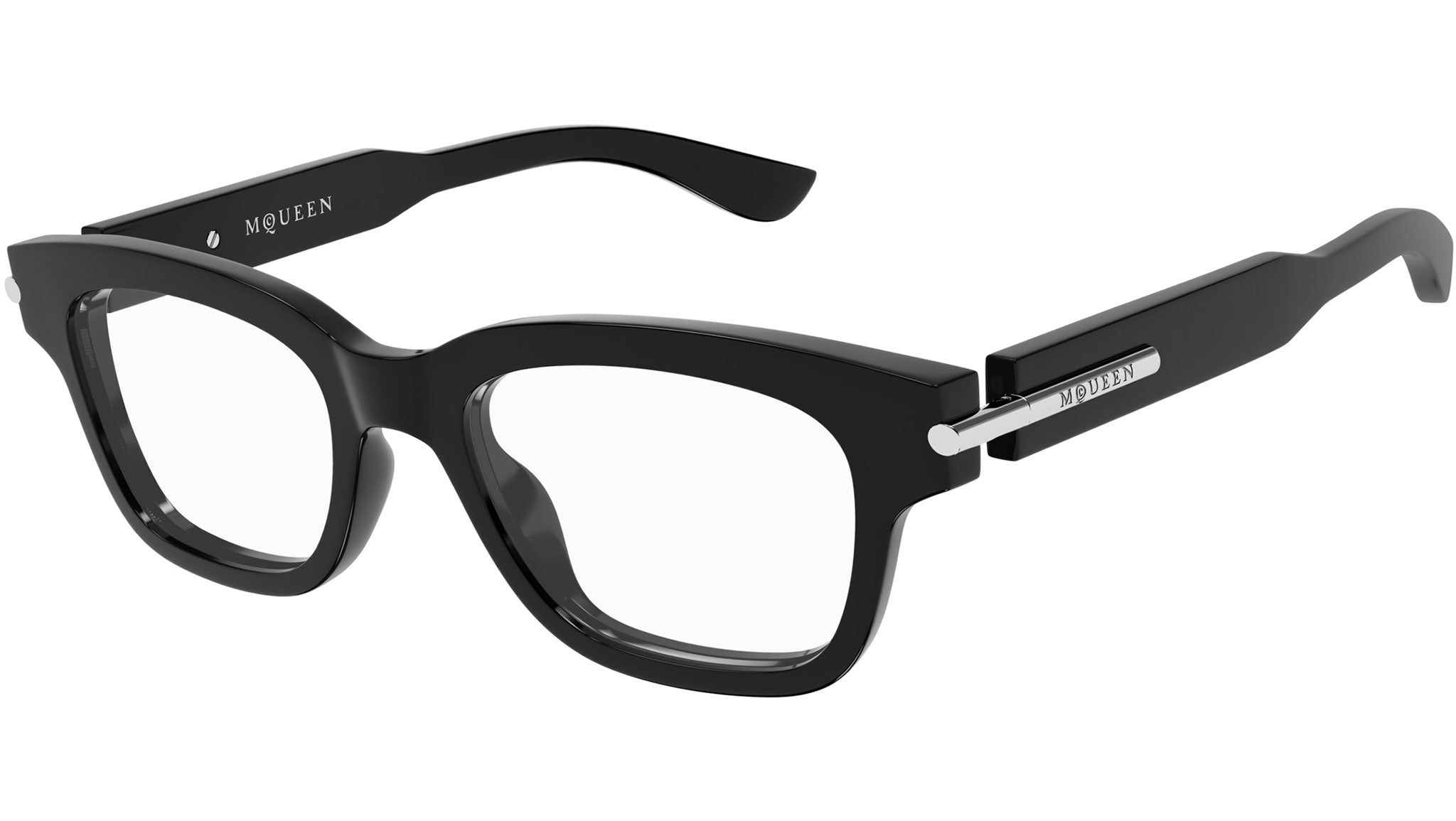 Occhiali da vista Alexander McQueen T-Bar modello AM0497O in acetato riciclato rettangolari codice colore 005 nero lucido tinta unita con aste nero e lenti demo. Rivenditore autorizzato Alexander McQueen online. Gli occhiali vengono consegnati con custodia e accessori originali e sono coperti dalla garanzia ufficiale di 12 mesi del produttore.