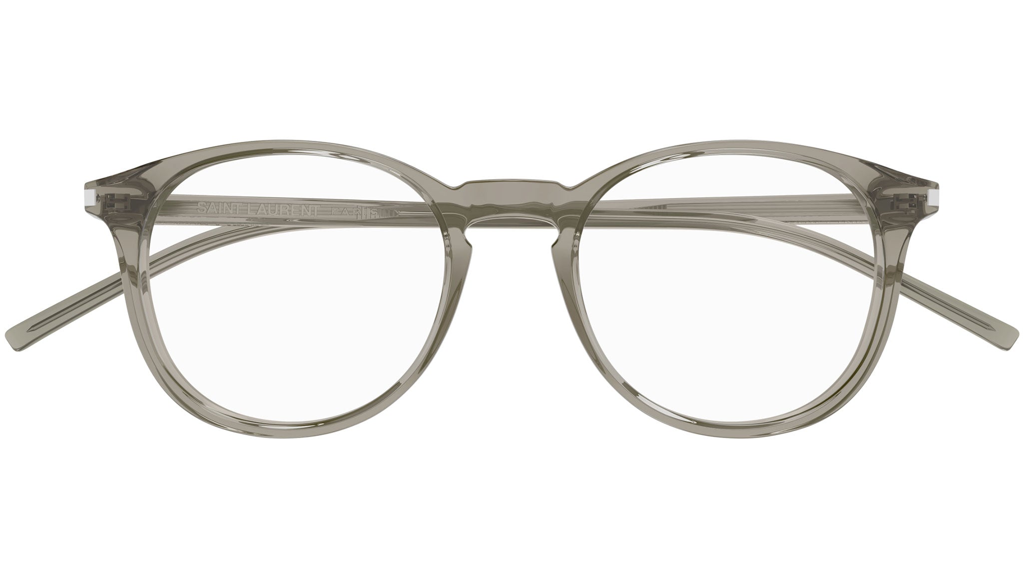 Occhiali da vista Saint Laurent SL 106 025 unisex con montatura pantos in acetato riciclato grigio talpa e lenti demo. Linea: Corner Angle. Codice modello: SL 106. Codice colore: 025. Made in Italy. Rivenditore autorizzato Saint Laurent online. Gli occhiali vengono consegnati con custodia e accessori originali e sono coperti dalla garanzia ufficiale di 12 mesi del produttore.