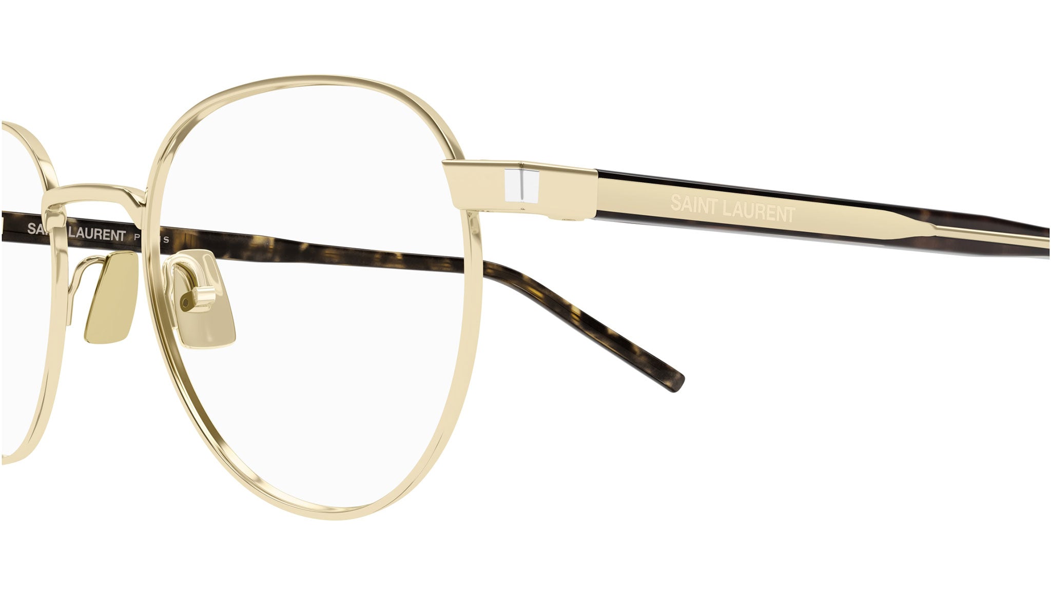 Occhiali da vista Saint Laurent SL 781 002 unisex con montatura ovale in metallo oro e lenti demo. Linea: Corner Angle. Codice modello: SL 781. Codice colore: 002. Made in Japan. Rivenditore autorizzato Saint Laurent online. Gli occhiali vengono consegnati con custodia e accessori originali e sono coperti dalla garanzia ufficiale di 12 mesi del produttore.