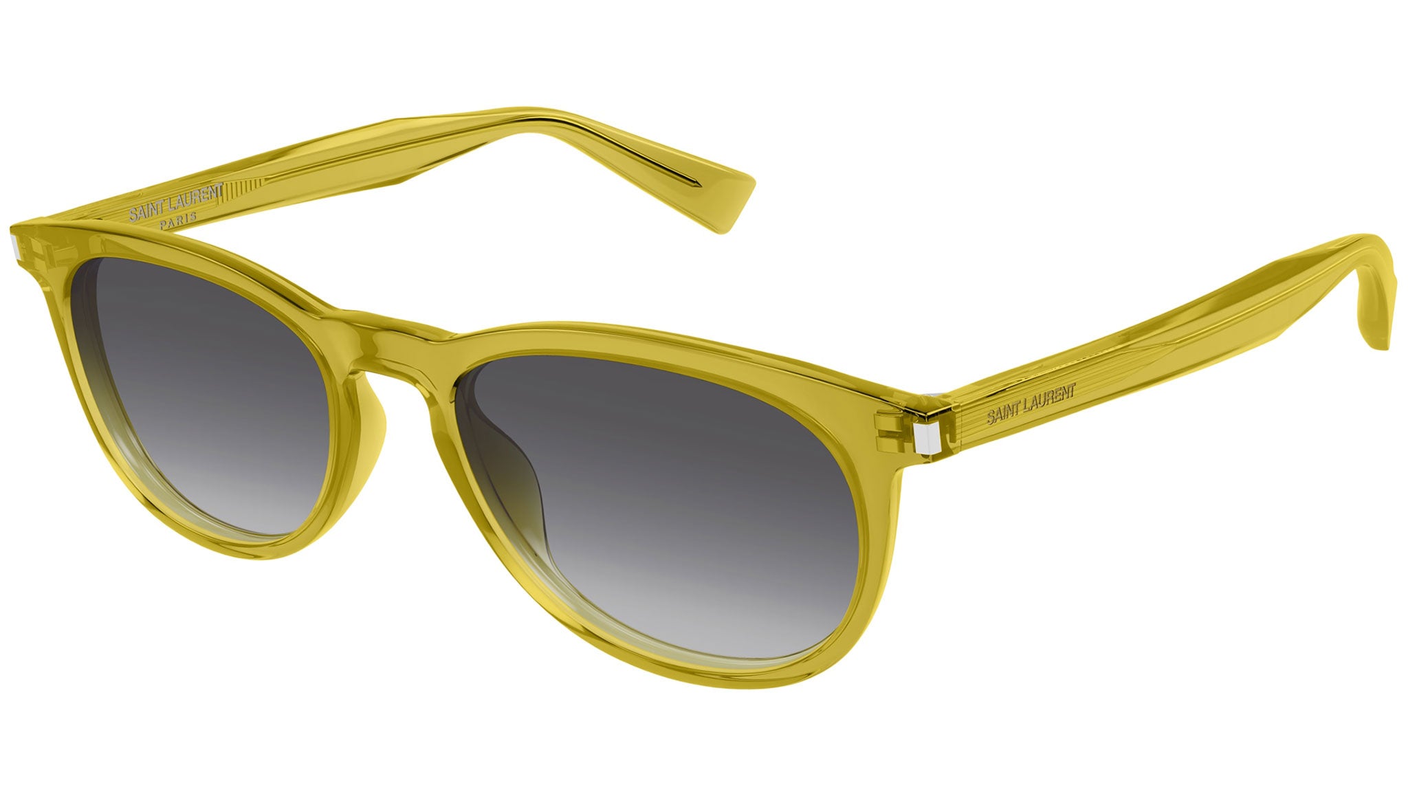 Occhiali da sole Saint Laurent SL 797 005 donna con montatura ovale in acetato riciclato giallo e lenti nero doppia sfumatura grigio. Linea: Corner Angle. Codice modello: SL 797. Codice colore: 005. Made in Italy. Rivenditore autorizzato Saint Laurent online. Gli occhiali vengono consegnati con custodia e accessori originali e sono coperti dalla garanzia ufficiale di 12 mesi del produttore.