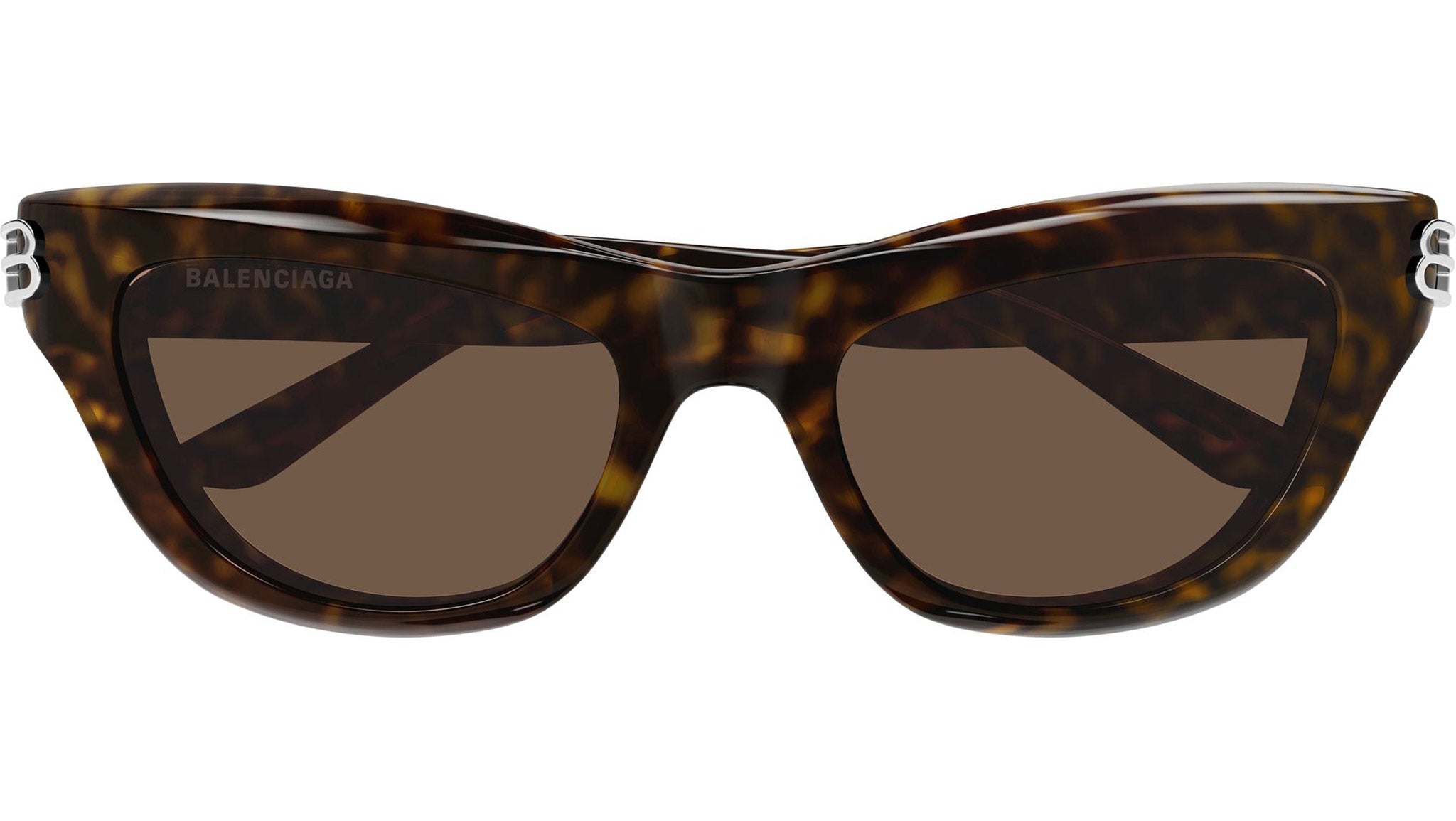 Occhiali da sole Balenciaga BB0430S 002 donna con montatura cat eye in acetato riciclato avana scuro lucido e lenti marrone solido. Linea: Everyday. Codice modello: BB0430S. Codice colore: 002. Made in Japan. Rivenditore autorizzato Balenciaga online. Gli occhiali vengono consegnati con custodia e accessori originali e sono coperti dalla garanzia ufficiale di 12 mesi del produttore.