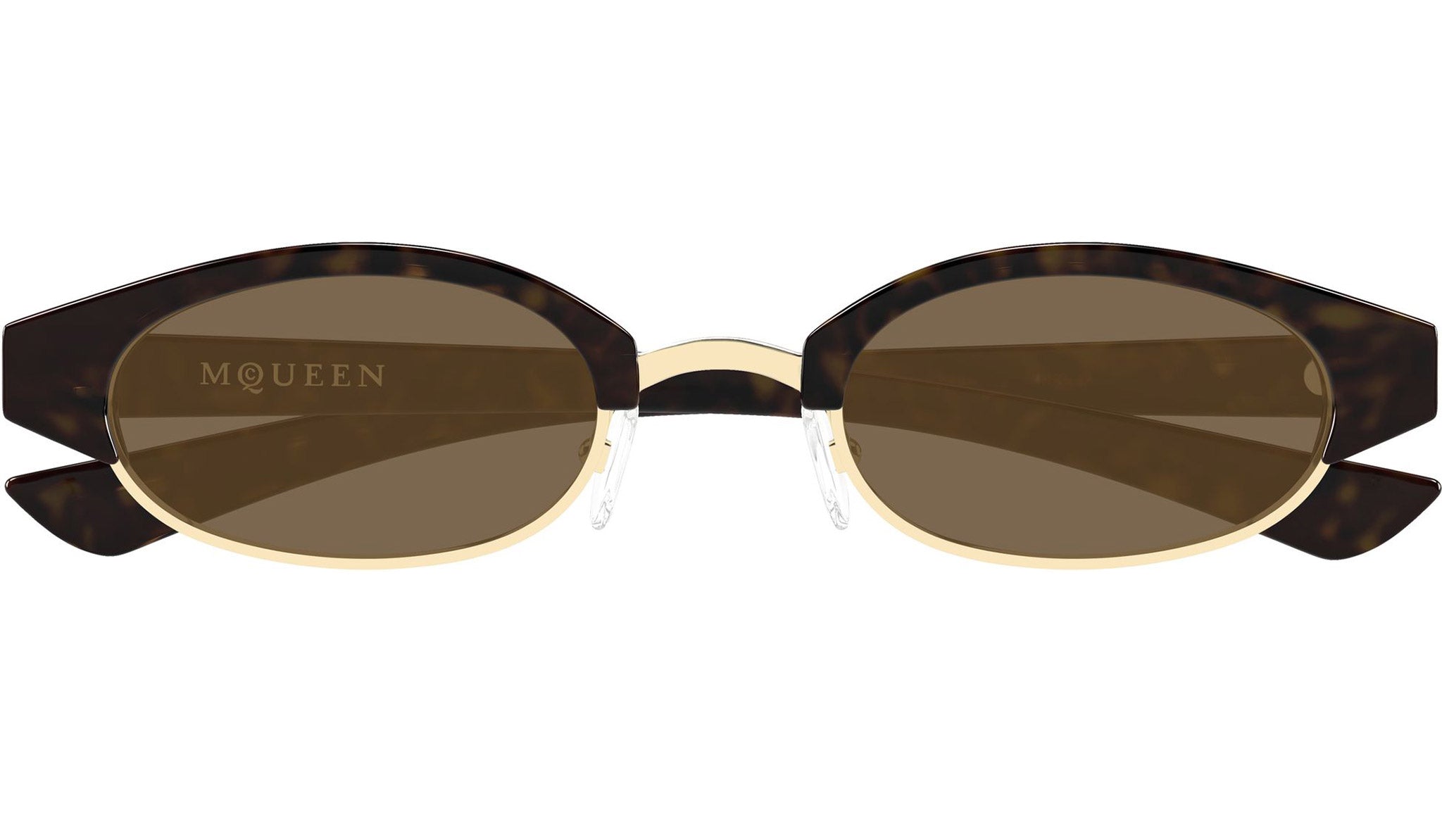 Occhiali da sole Alexander McQueen Logo modello AM0534S in acetato riciclato panthos codice colore 002 avana scuro lucido con aste avana e lenti color marrone tinta unita. Rivenditore autorizzato Alexander McQueen online. Gli occhiali vengono consegnati con custodia e accessori originali e sono coperti dalla garanzia ufficiale di 12 mesi del produttore.