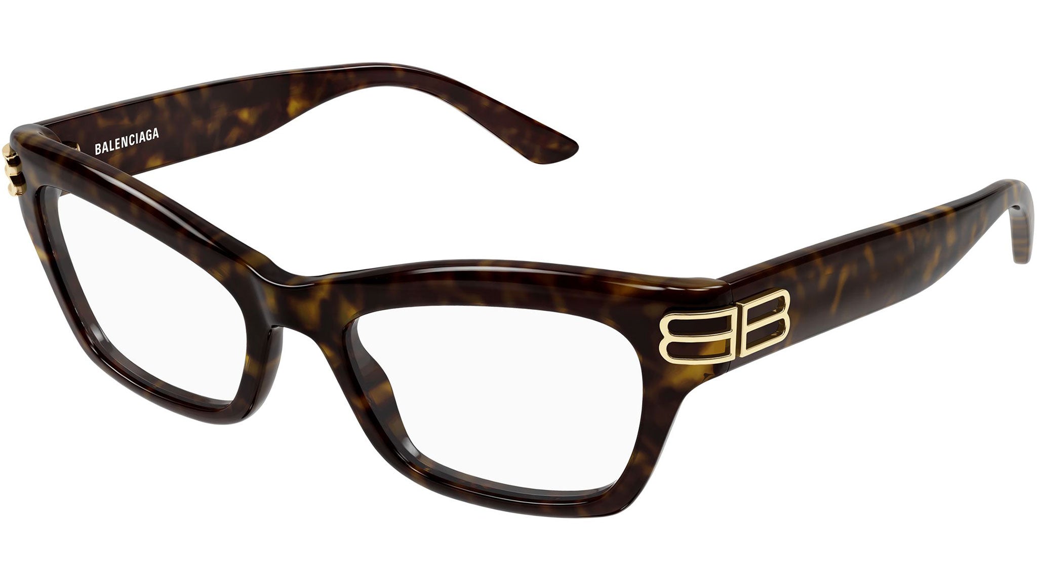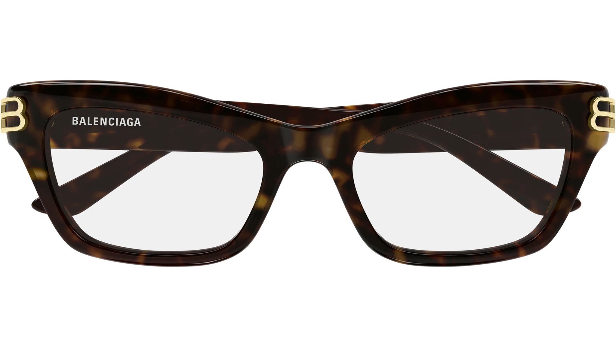 Occhiali da vista Balenciaga BB0435O 002 donna con montatura cat eye in acetato riciclato avana scuro lucido e lenti demo. Linea: Everyday. Codice modello: BB0435O. Codice colore: 002. Made in Japan. Rivenditore autorizzato Balenciaga online. Gli occhiali vengono consegnati con custodia e accessori originali e sono coperti dalla garanzia ufficiale di 12 mesi del produttore.