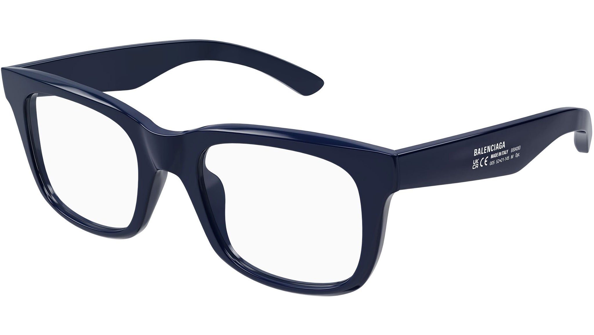 Occhiali da vista Balenciaga BB0428O uomo con montatura rettangolare in acetato riciclato blu lucido solido e lenti demo. Linea: Everyday. Codice modello: BB0428O. Codice colore 54 mm: 010. 54 mm: 001. Made in Italy. Rivenditore autorizzato Balenciaga online. Gli occhiali vengono consegnati con custodia e accessori originali e sono coperti dalla garanzia ufficiale di 12 mesi del produttore.