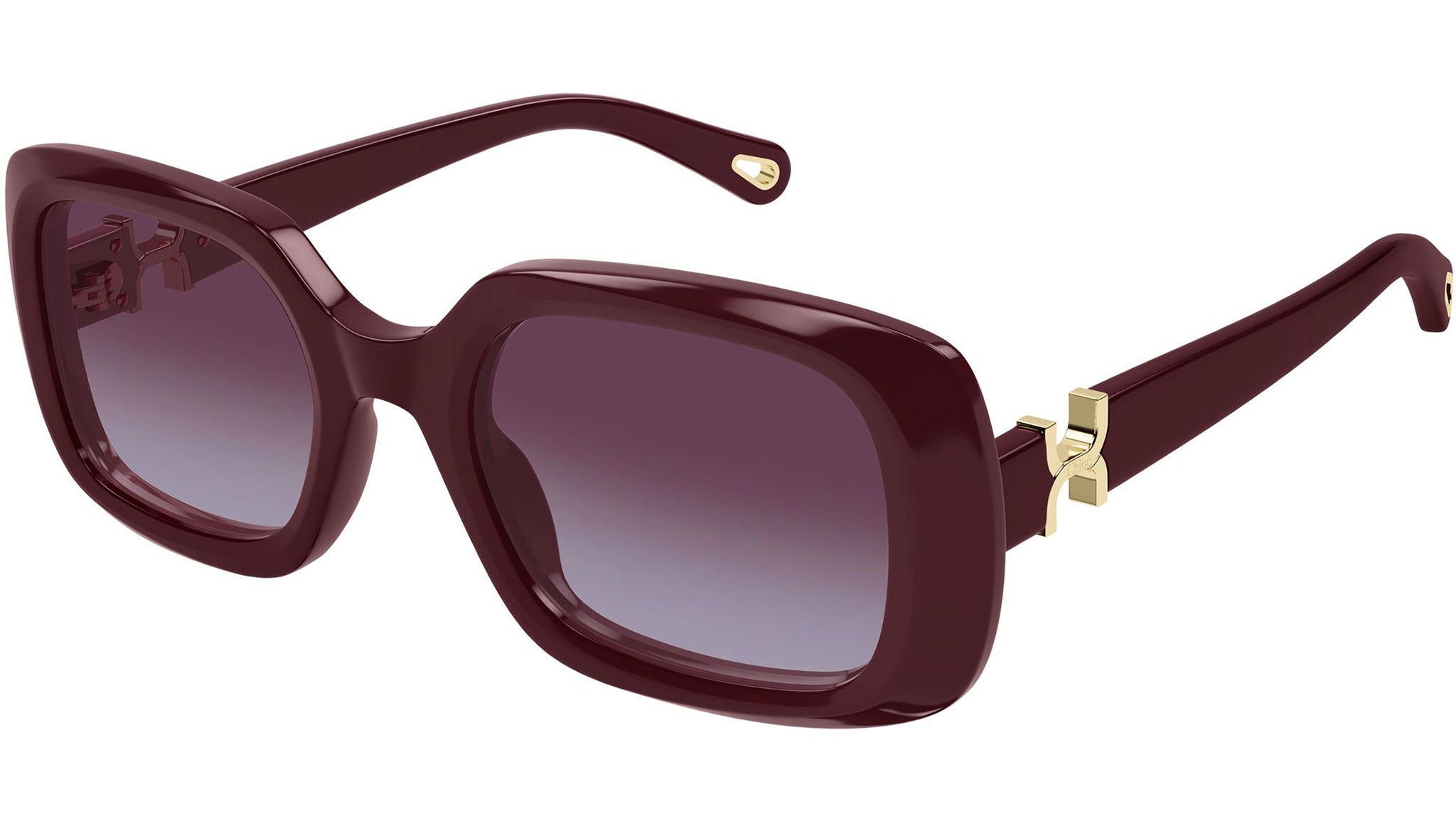 Occhiali da sole Chloé CH0333S 004 donna con montatura rettangolare in acetato riciclato rosso vino tinta unita lucido e lenti doppia sfumatura bordeaux / grigio chiaro. Linea: Chloé. Codice modello: CH0333S. Codice colore: 004. Made in Japan. Rivenditore autorizzato Chloé online. Gli occhiali vengono consegnati con custodia e accessori originali e sono coperti dalla garanzia ufficiale di 12 mesi del produttore.