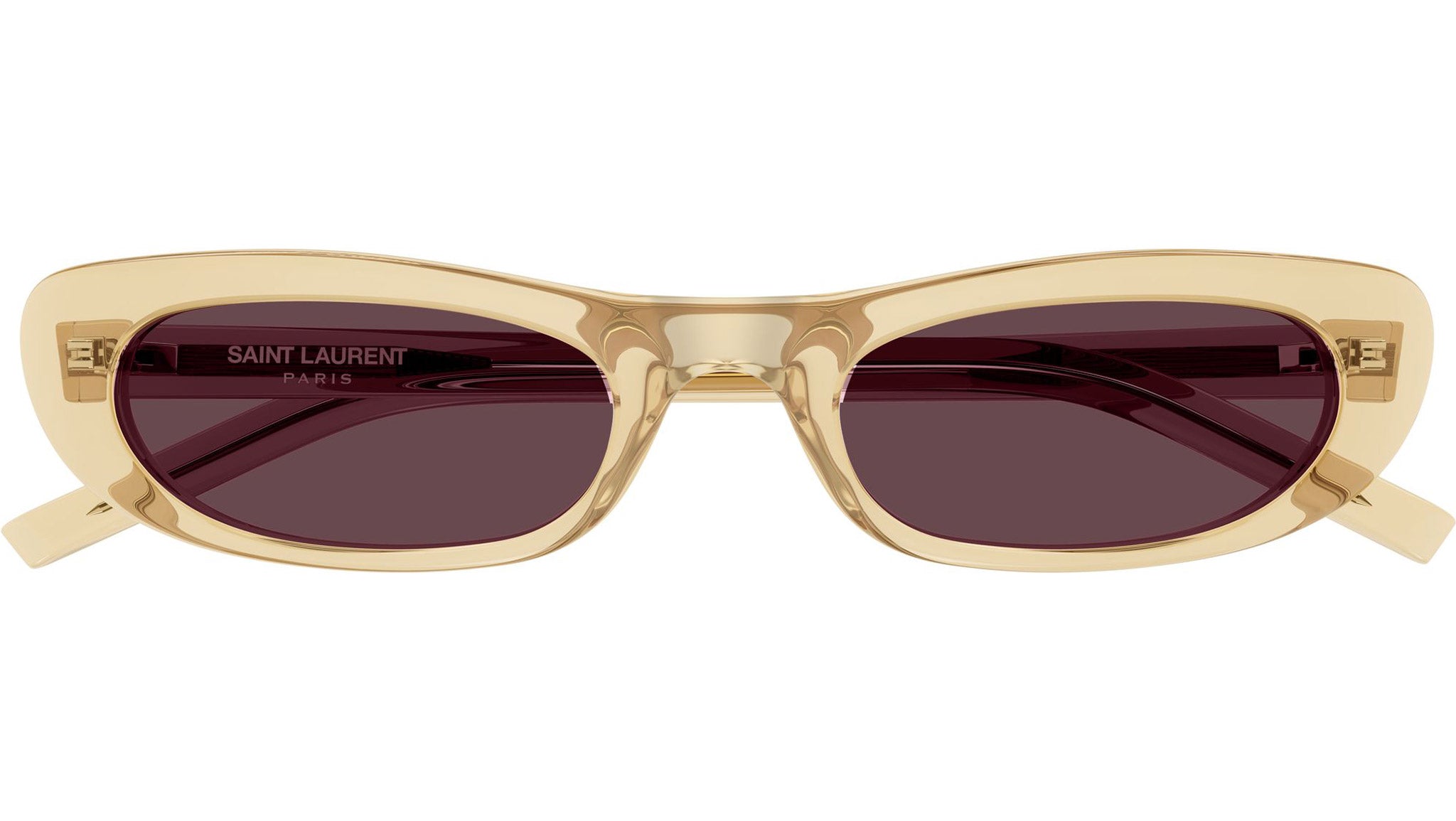 Occhiali da sole Saint Laurent SL 557 SHADE 007 donna con montatura ovale in acetato giallo lucido trasparente e lenti viola scuro tinta unita. Linea: SL Logo. Codice modello: SL 557 SHADE. Codice colore: 007. Made in Italy. Rivenditore autorizzato Saint Laurent online. Gli occhiali vengono consegnati con custodia e accessori originali e sono coperti dalla garanzia ufficiale di 12 mesi del produttore.