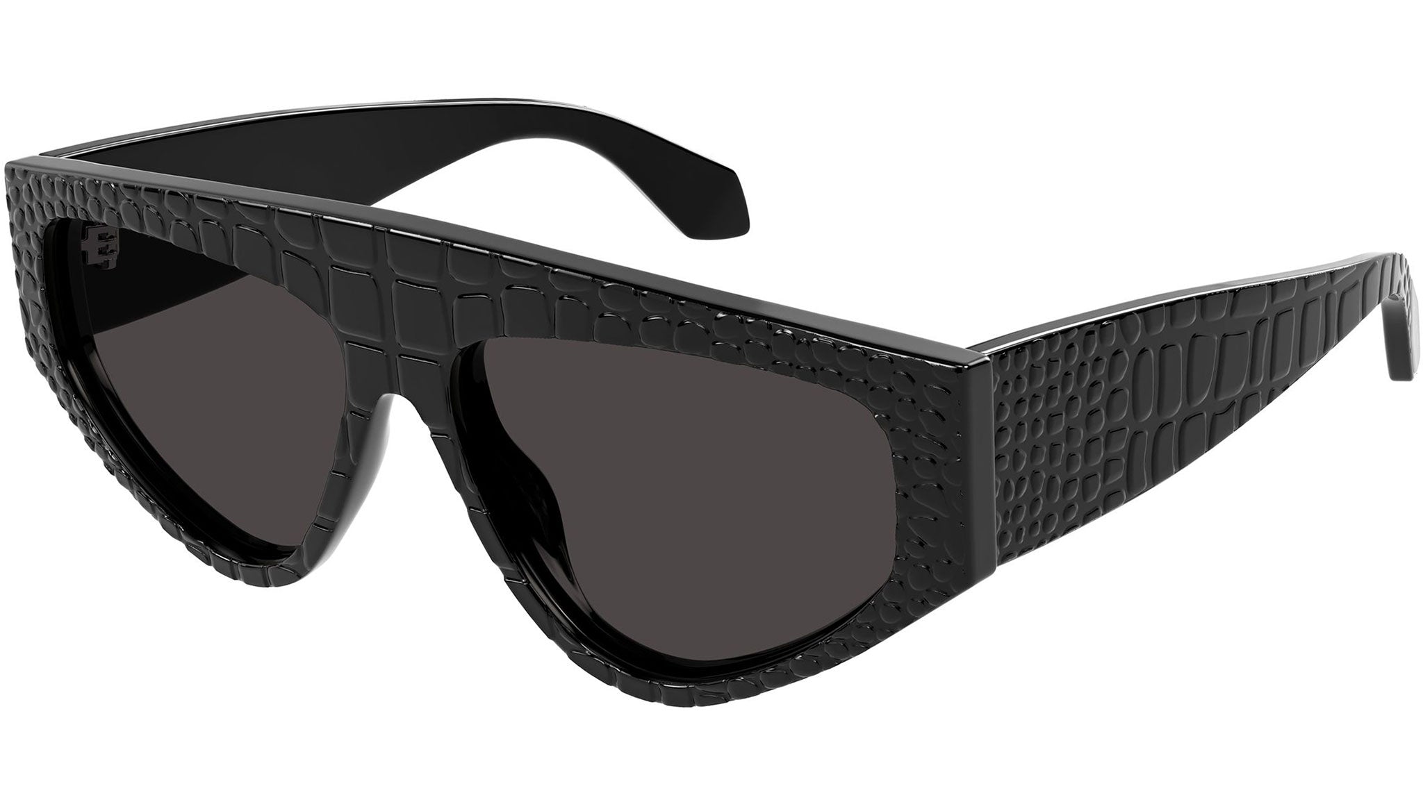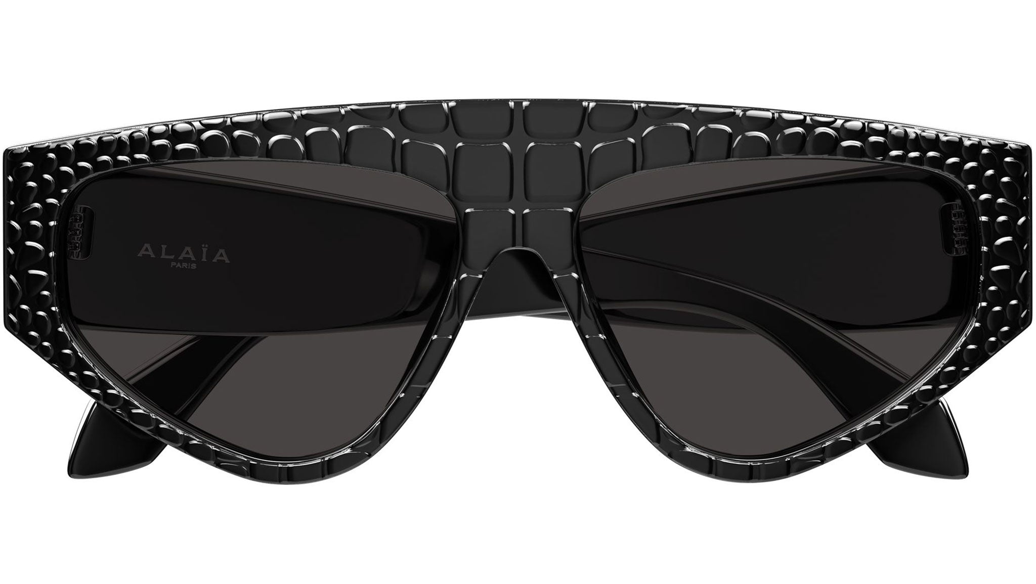 Occhiali da sole Azzedine Alaïa AA0097S 001 donna con montatura geometrica in acetato riciclato nero solido lucido con texture coccodrillo e lenti grigio tinta unita. Linea: Azzedine Alaïa. Codice modello: AA0097S. Codice colore: 001. Made in Japan. Rivenditore autorizzato Azzedine Alaïa online. Gli occhiali vengono consegnati con custodia e accessori originali e sono coperti dalla garanzia ufficiale di 12 mesi del produttore.