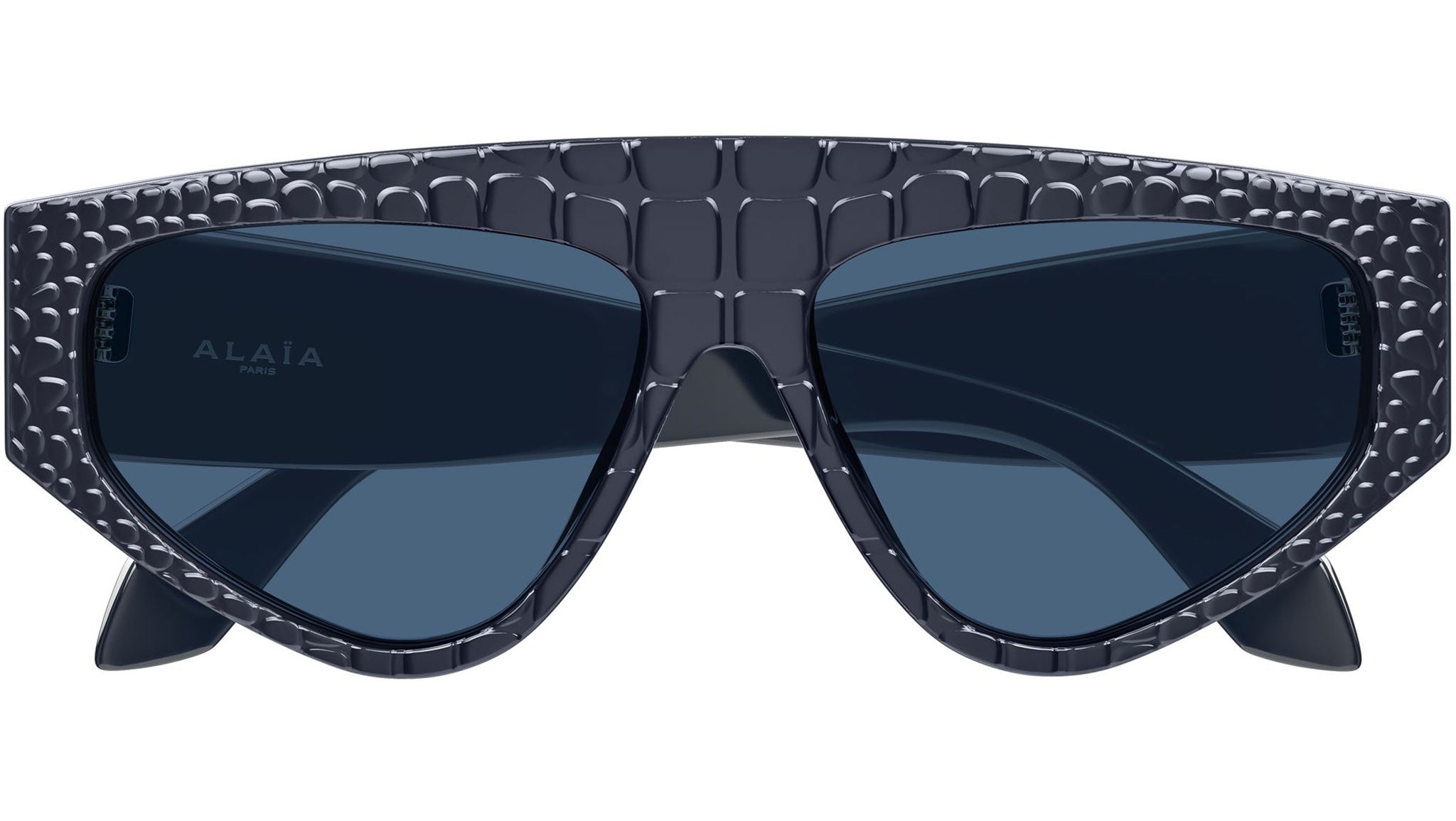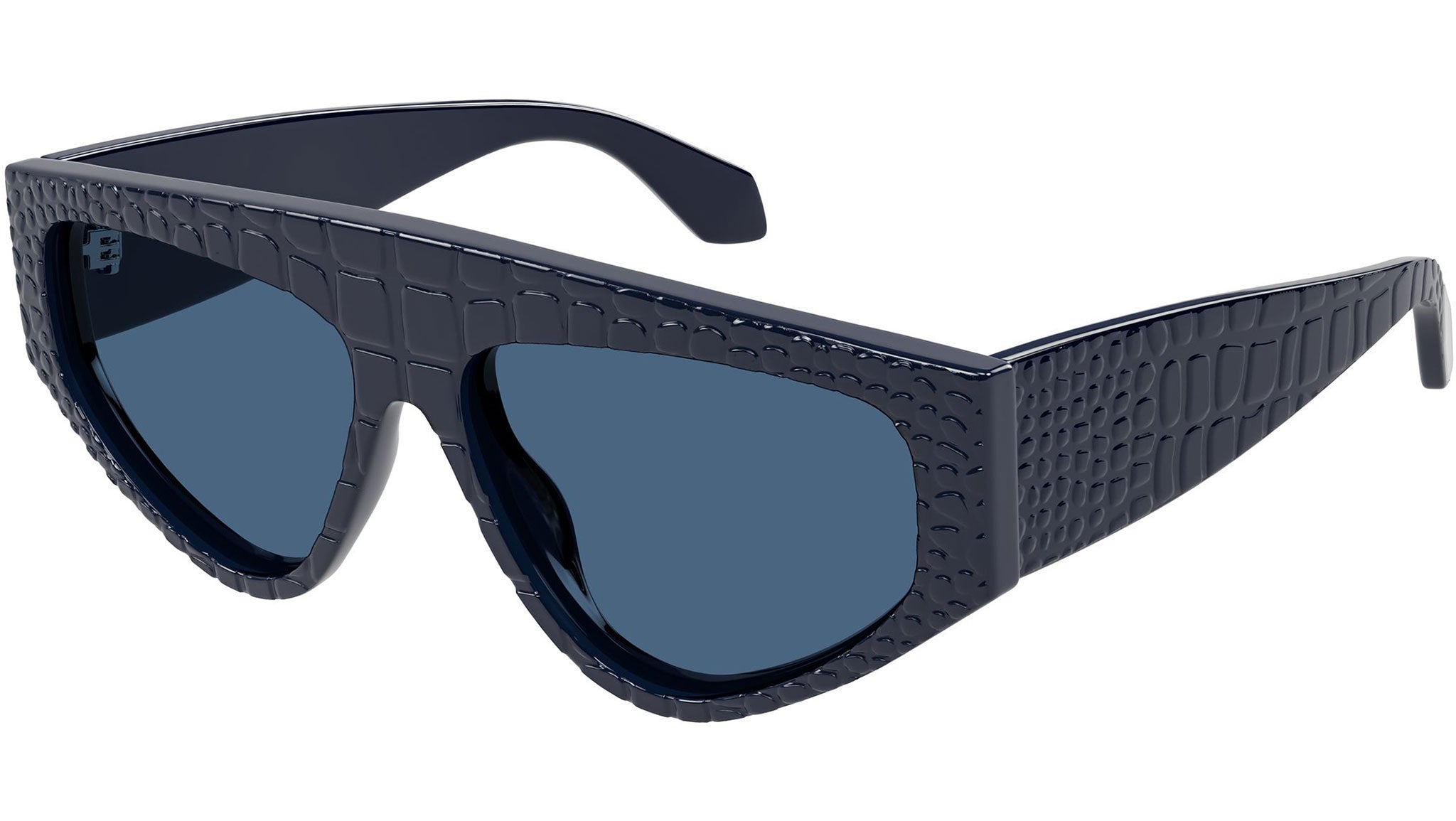 Occhiali da sole Azzedine Alaïa AA0097S 004 donna con montatura geometrica in acetato riciclato blu scuro solido lucido con texture coccodrillo e lenti blu tinta unita. Linea: Azzedine Alaïa. Codice modello: AA0097S. Codice colore: 004. Made in Japan. Rivenditore autorizzato Azzedine Alaïa online. Gli occhiali vengono consegnati con custodia e accessori originali e sono coperti dalla garanzia ufficiale di 12 mesi del produttore.