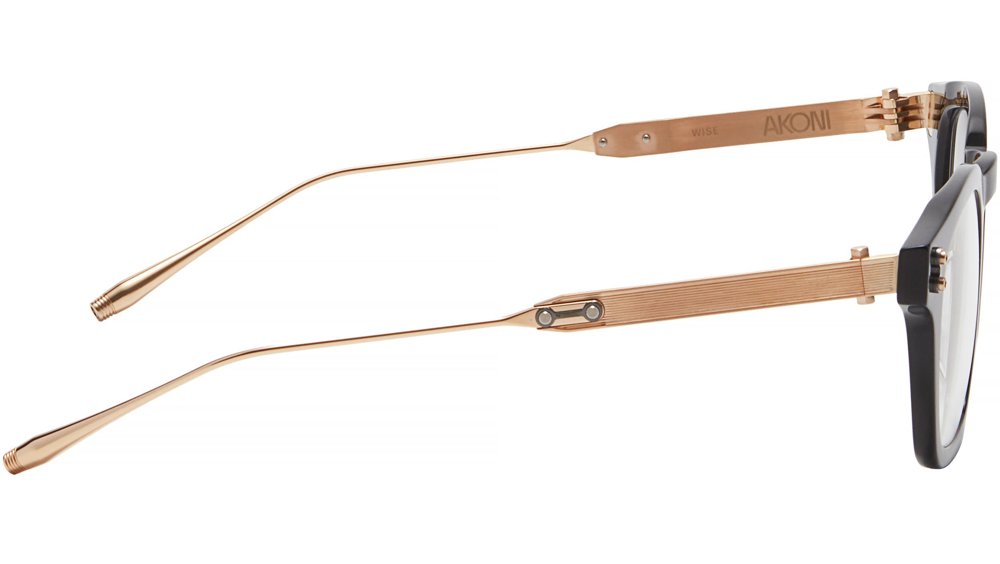 Il modello Wise di Akoni si basa sia sulla silhouette che sull'etimologia del panthos, una montatura dal design classico che combina un ponte a buco di serratura, aste alte e lenti grandi e arrotondate. Sono proprio le generose proporzioni della versatile forma ad aver ispirato il suo nome, che deriva dal greco "pantoscopic", che significa "un ampio campo visivo". Naturalmente, una visione decisamente aperta è anche una componente essenziale della vera saggezza, e la montatura AKX 418A Wise riflette la costante celebrazione della curiosità e la profonda comprensione dell'artigianato di Akoni, che permettono agli altri di apprezzare la singolare devozione alla perfezione di ogni dettaglio che contraddistingue il marchio di occhiali di lusso. I numerosi dettagli di grande effetto di Wise - tra cui un gioco fresco e piatto sul caratteristico motivo di zigrinatura di Akoni, la posizione simmetrica dei rivetti, che riflette i principi del rapporto aureo e una punta distintiva per rifinire le aste in titanio giapponese - sono chiaramente progettati per superare le valutazioni più sagge.