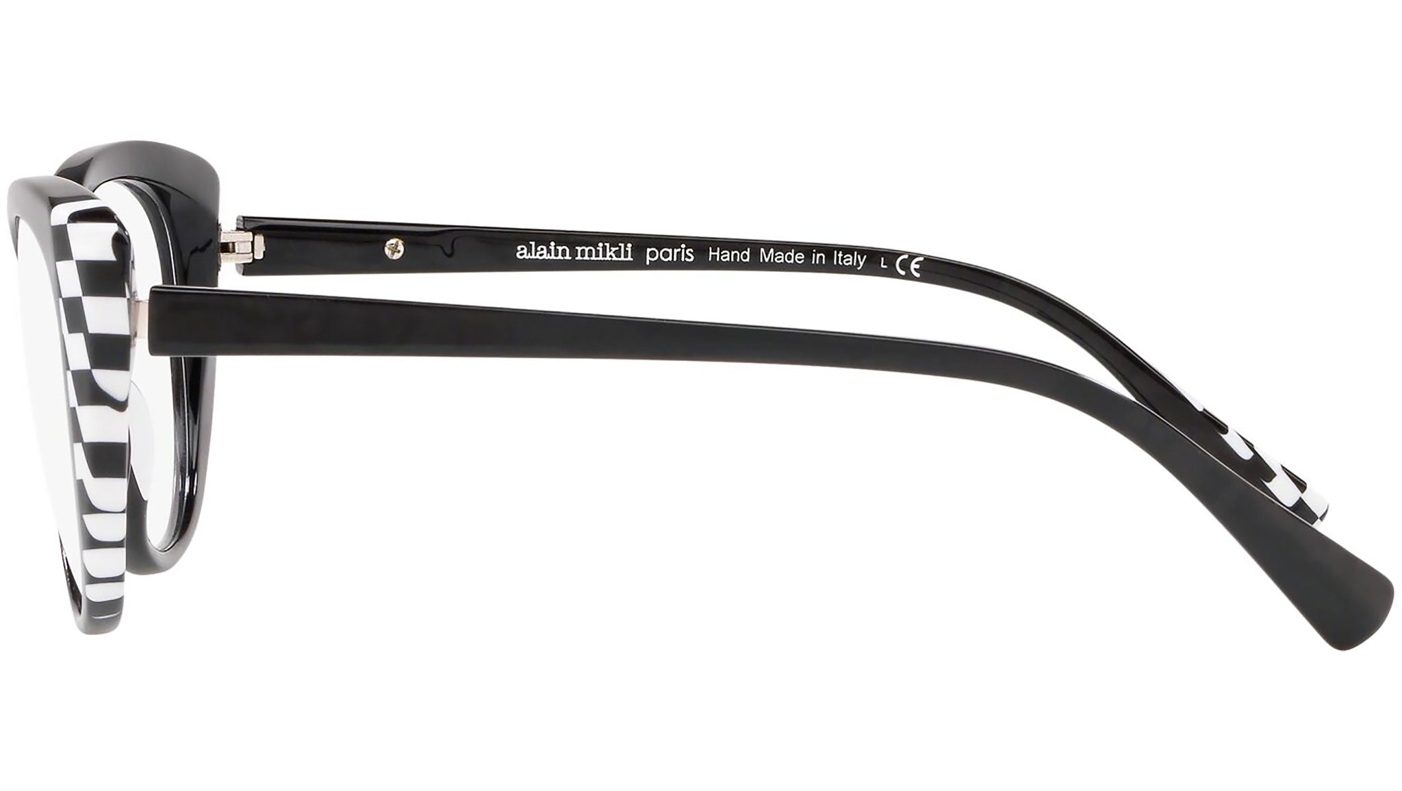 Occhiali da vista Alain Mikli modello 0A03084 variante colore cristallo e damier nero e Mikl noir, codice colore 008. Alain Mikli è stato il primo marchio a sostenere l’idea di occhiale come accessorio. Dalla fusione di arte e moda nascono montature da sempre sinonimo di unicità e provocazione, contraddistinte per il design originale e le combinazioni di colori esclusive.
