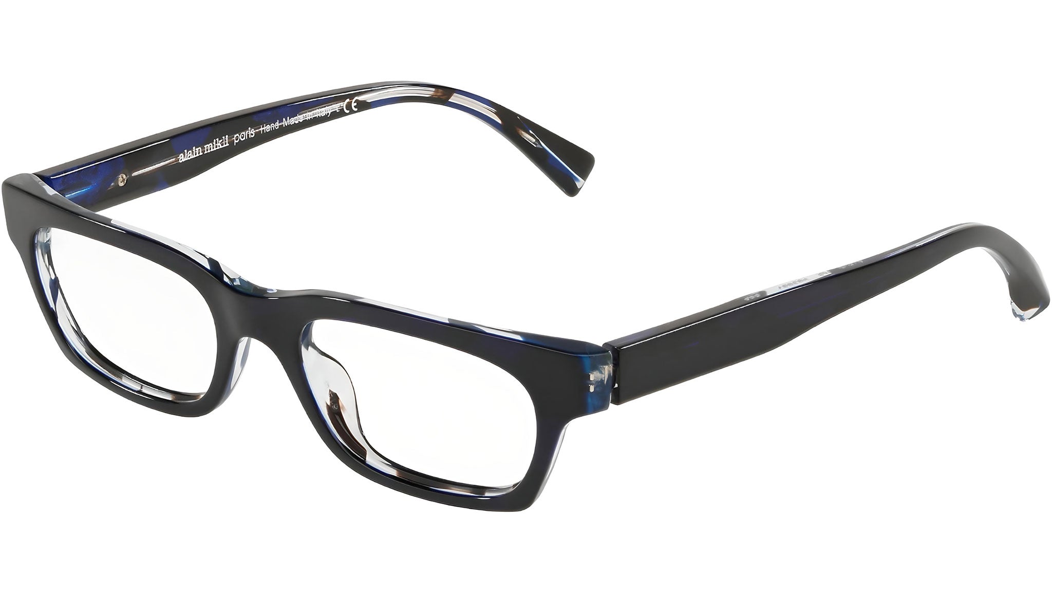 Occhiali da vista Alain Mikli modello 0A03091 variante colore top blu blu e fili, codice colore 005. Alain Mikli è stato il primo marchio a sostenere l’idea di occhiale come accessorio. Dalla fusione di arte e moda nascono montature da sempre sinonimo di unicità e provocazione, contraddistinte per il design originale e le combinazioni di colori esclusive.