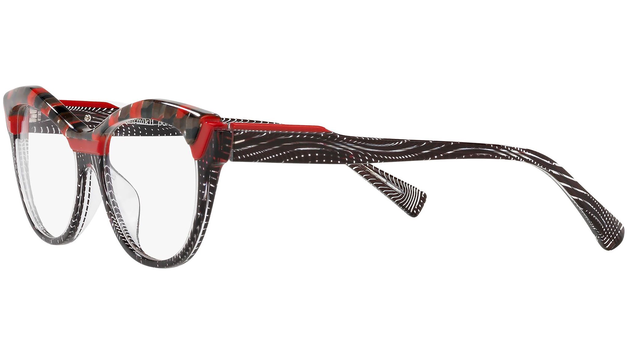 Occhiali da vista Alain Mikli modello A03128 variante colore scacchiera nero e trasparente e rosso, codice colore 001. Alain Mikli è stato il primo marchio a sostenere l’idea di occhiale come accessorio. Dalla fusione di arte e moda nascono montature da sempre sinonimo di unicità e provocazione, contraddistinte per il design originale e le combinazioni di colori esclusive.