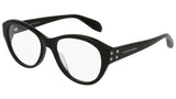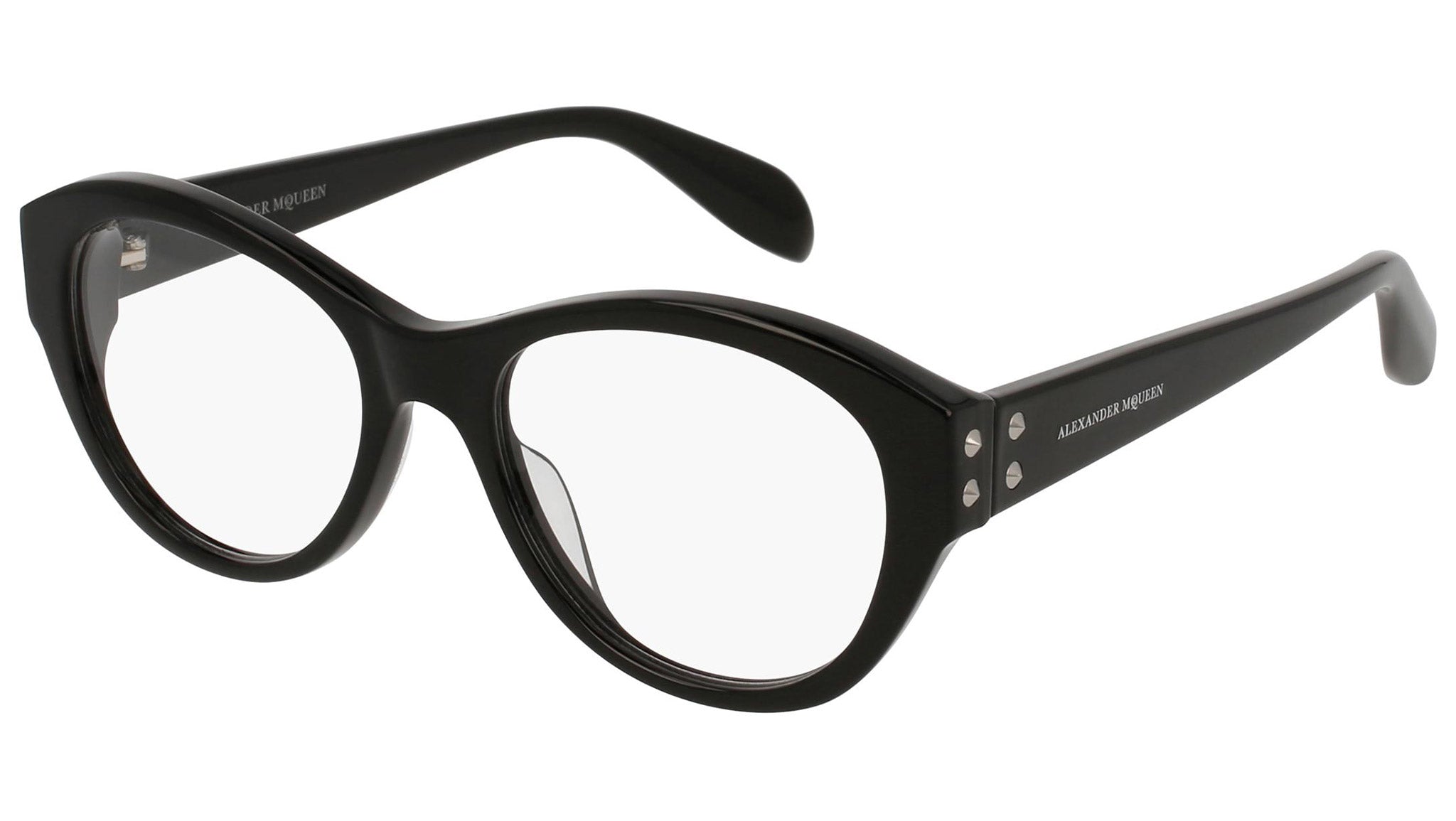 Alexander McQueen optical glasses model AM0053O 001 featuring shiny black frame and black colour temple. Synonymous with fearless fashion, Alexander McQueen Eyewear eyewear styles represent a juxtaposition between contrasting elements, as his runway styles are unique and inspiring.