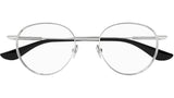 Occhiali da vista Alexander McQueen T-Bar modello AM0502O in metallo panthos codice colore 001 argento lucido con aste argento e lenti demo. Rivenditore autorizzato Alexander McQueen online. Gli occhiali vengono consegnati con custodia e accessori originali e sono coperti dalla garanzia ufficiale di 12 mesi del produttore.