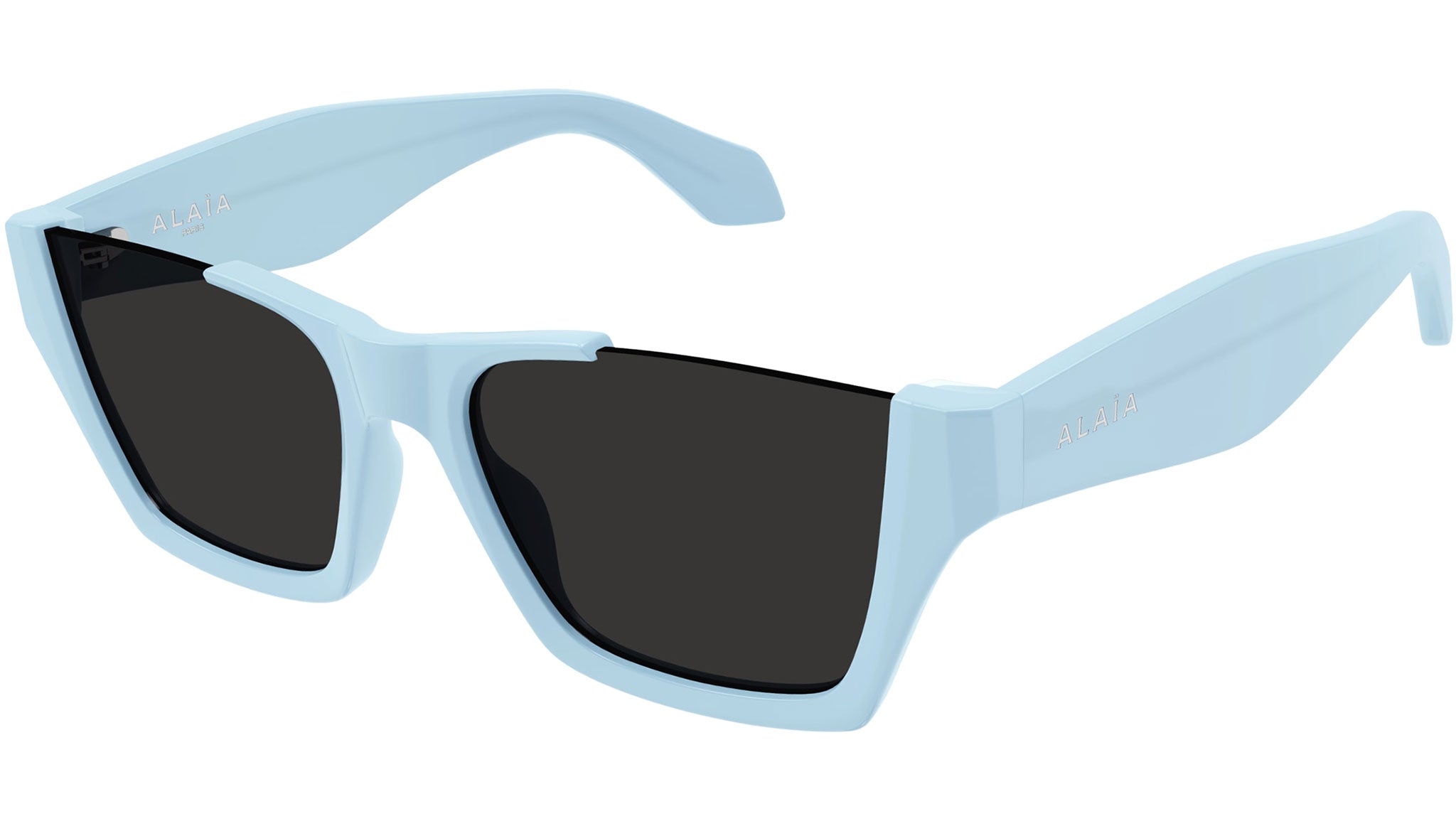 Occhiali da sole Azzedine Alaïa AA0081S 003 donna con montatura rettangolare in acetato riciclato blu chiaro tinta unita lucido e lenti grigio tinta unita. Linea: Lettering Logo. Codice modello: AA0081S. Codice colore: 003. Made in Italy. Rivenditore autorizzato Alaïa online. Gli occhiali vengono consegnati con custodia e accessori originali e sono coperti dalla garanzia ufficiale di 12 mesi del produttore.