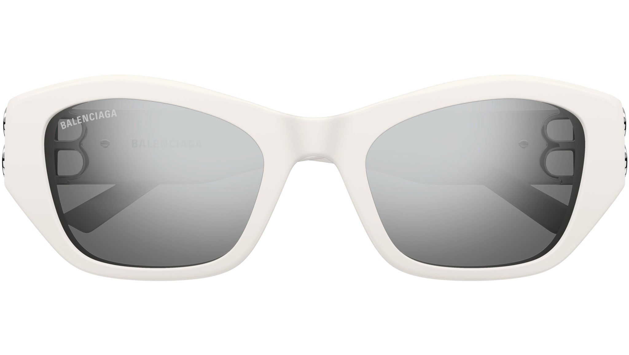 Occhiali da sole Balenciaga modello BB0311SK linea Everyday codice colore 003 avorio tinta unita lucido in acetato riciclato forma rectangle con lenti color argento + grigio tinta unita.