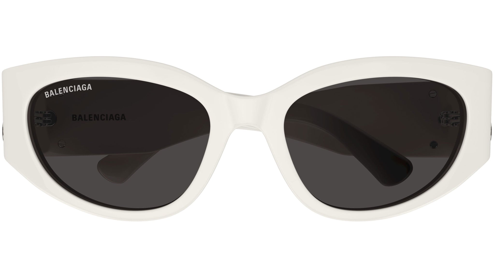 Occhiali da sole Balenciaga modello BB0324SK linea Everyday codice colore 004 avorio tinta unita lucido in acetato riciclato forma panthos con lenti color grigio tinta unita.