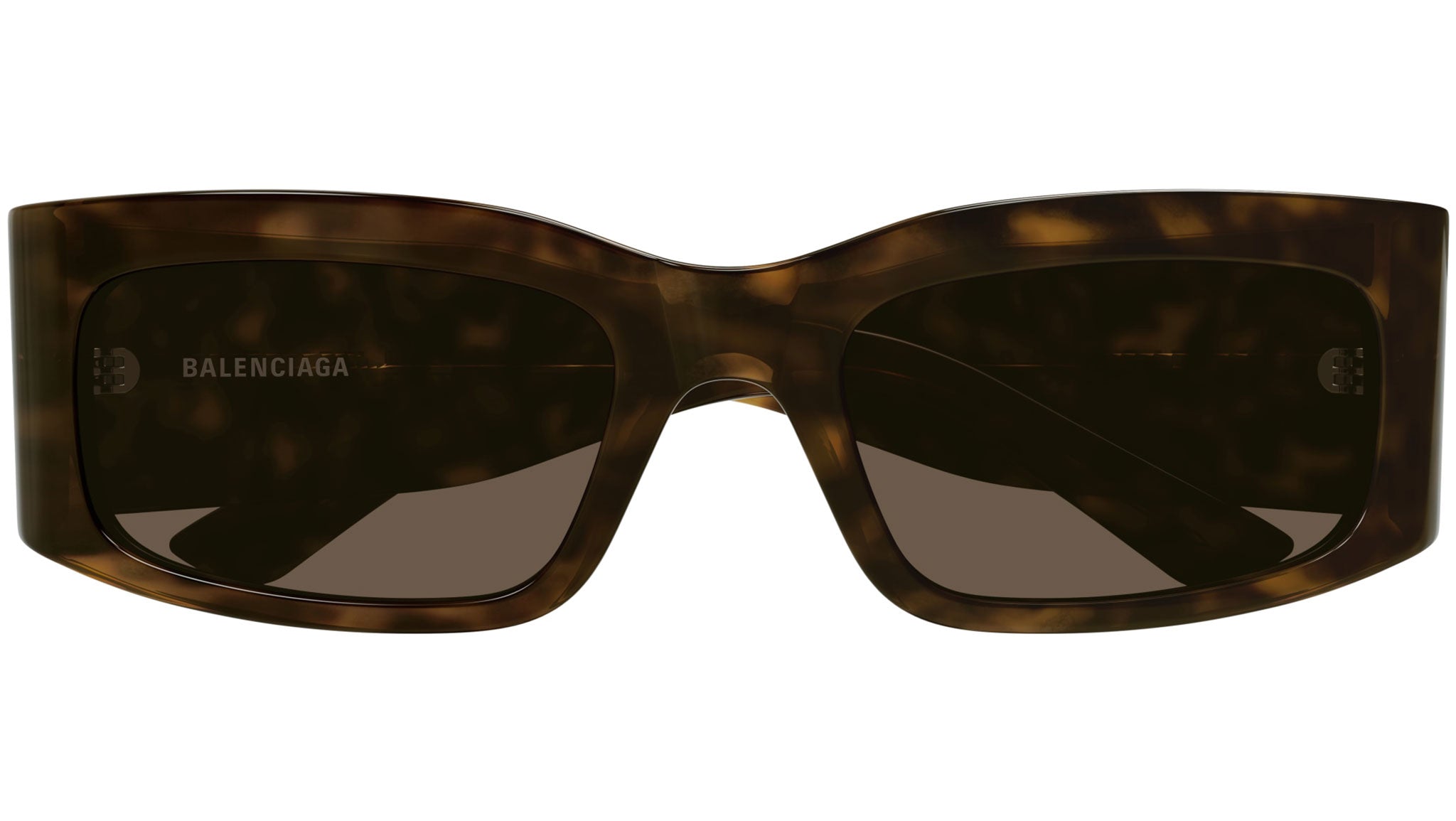 Occhiali da sole Balenciaga modello BB0328S linea Everyday codice colore 002 tartaruga scuro lucido in acetato riciclato forma rectangle con lenti color marrone tinta unita.