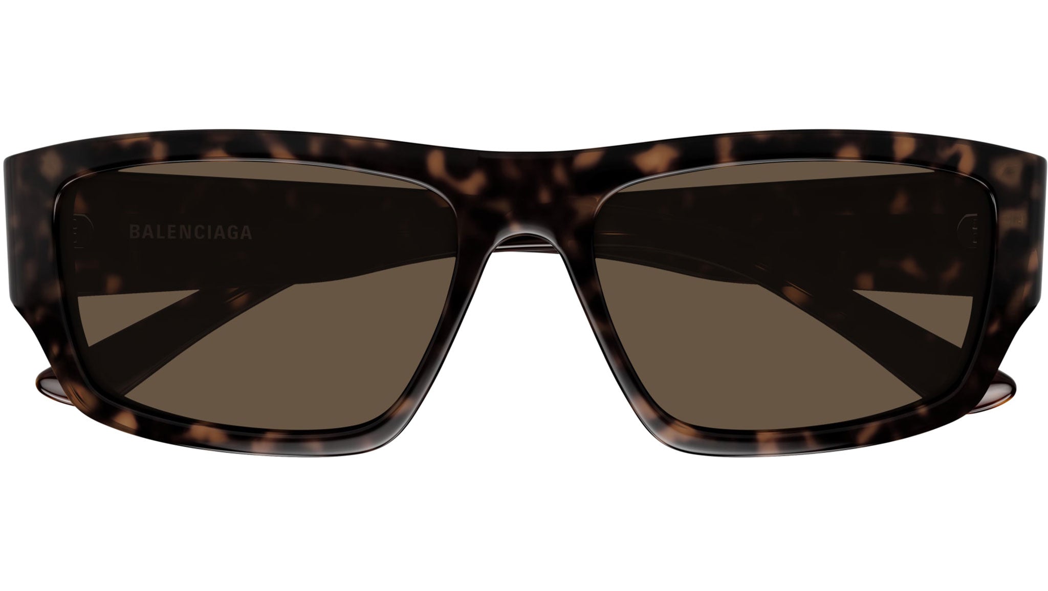 Occhiali da sole Balenciaga modello BB0366S linea Everyday codice colore 002 tartaruga scuro lucido in acetato riciclato forma rettangolare con aste color tartaruga e lenti color marrone tinta unita. Rivenditore autorizzato Balenciaga online. Gli occhiali vengono consegnati con custodia e accessori originali e sono coperti dalla garanzia ufficiale di 12 mesi del produttore.