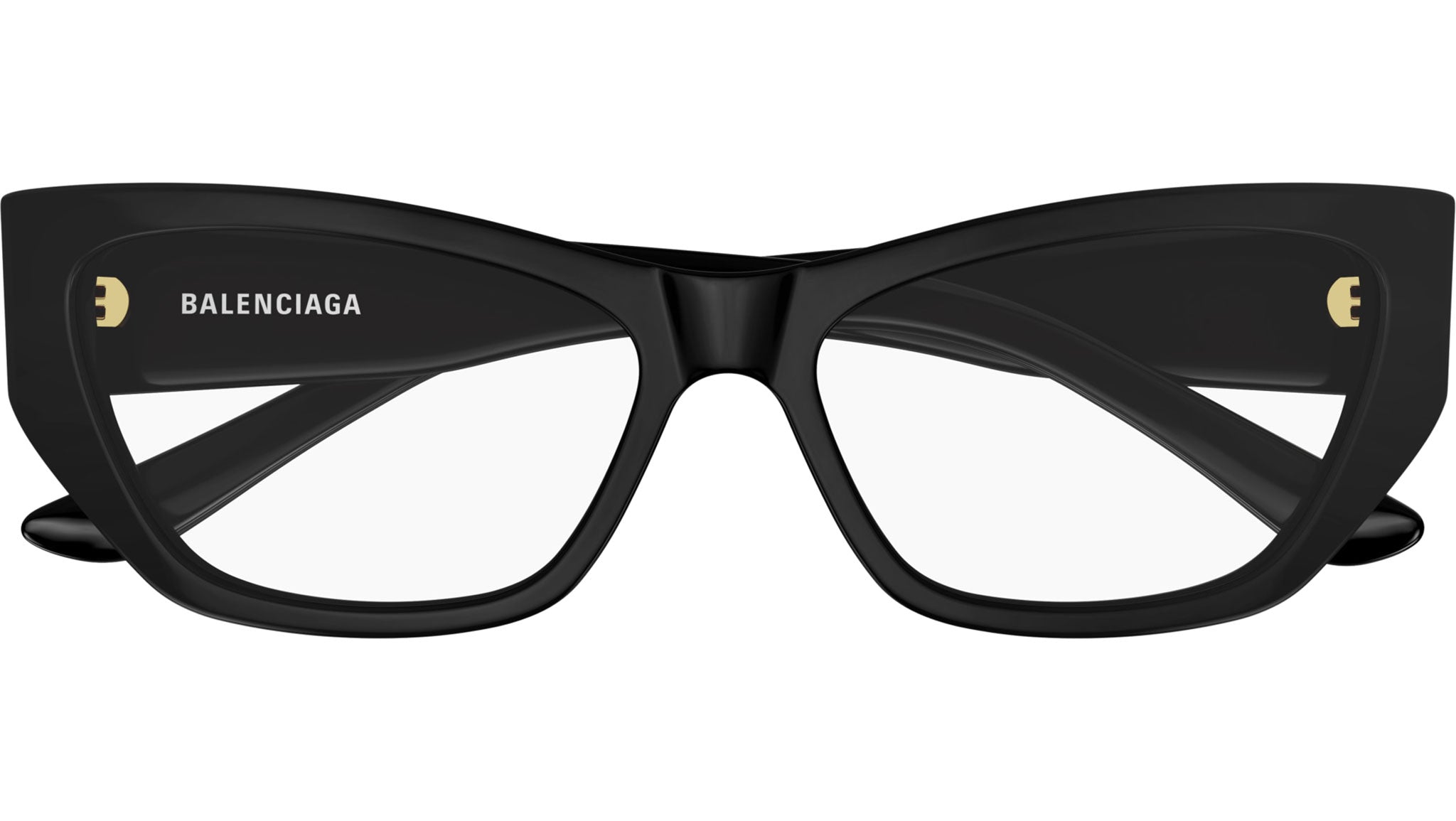 Occhiali da vista Balenciaga modello BB0372O linea Everyday codice colore 001 nero lucido tinta unita in acetato riciclato forma a gatto con aste color nero e lenti demo trasparenti. Rivenditore autorizzato Balenciaga online. Gli occhiali vengono consegnati con custodia e accessori originali e sono coperti dalla garanzia ufficiale di 12 mesi del produttore.