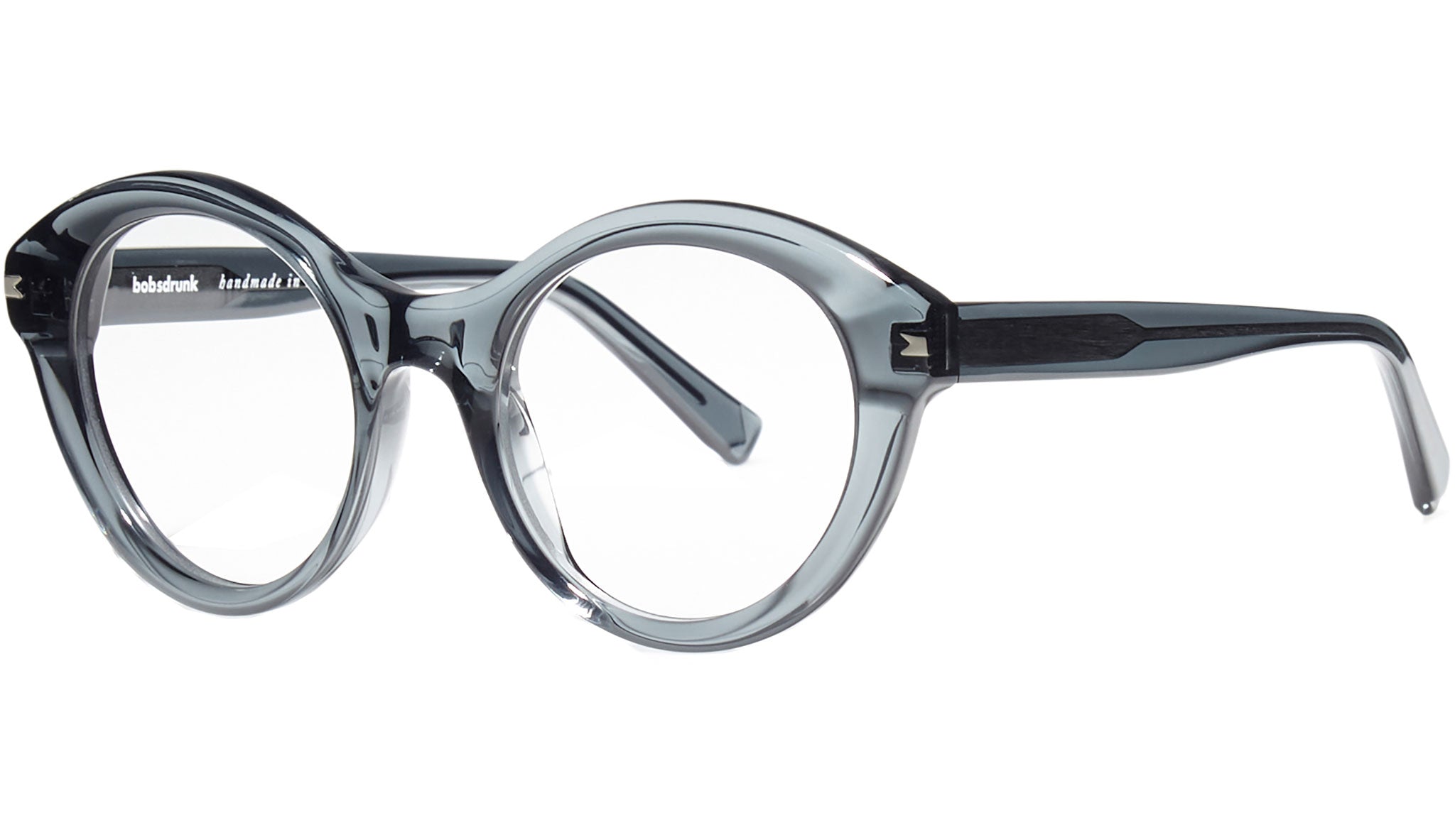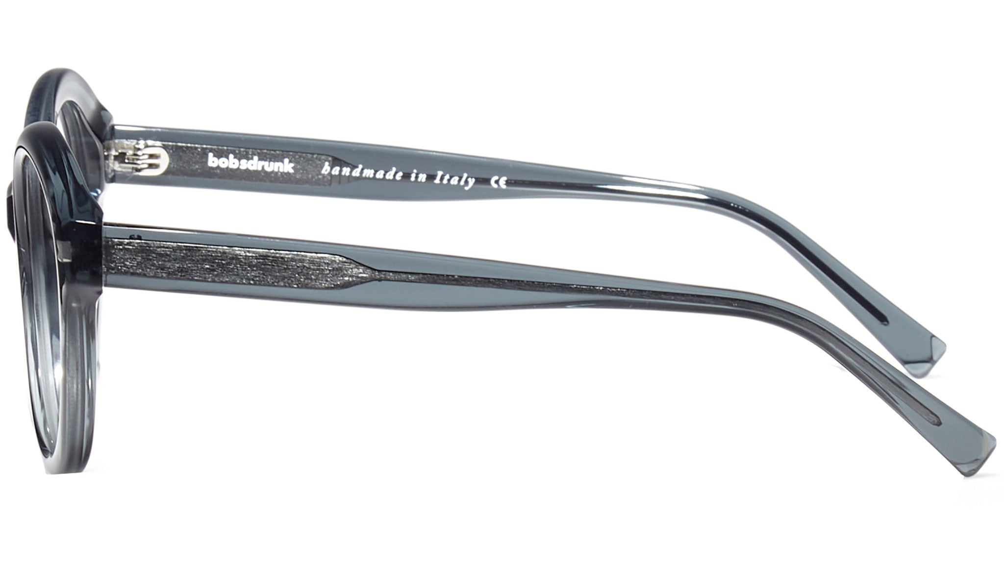 Montatura da vista Bobsdrunk Amy codice colore 19 in tonalità grigio trasparente. Prodotti senza tempo e forme audaci convivono in questa originale collezione Eyewear. Le linee sono disegnate con maestria, per creare un effetto di audace leggerezza. Ogni paio di occhiali Bobsdrunk è caratterizzato da un dettaglio emblematico, mostrato sulla parte anteriore e sulla punta delle aste, che evidenzia il valore del marchio. Rappresenta in un iconico simbolo l'unione della lettera iniziale e finale di Bobsdrunk. La scelta accurata dei materiali, la selezione dell'artigianalità e una costante ricerca cromatica sono le prerogative di ogni creazione di Bobsdrunk.