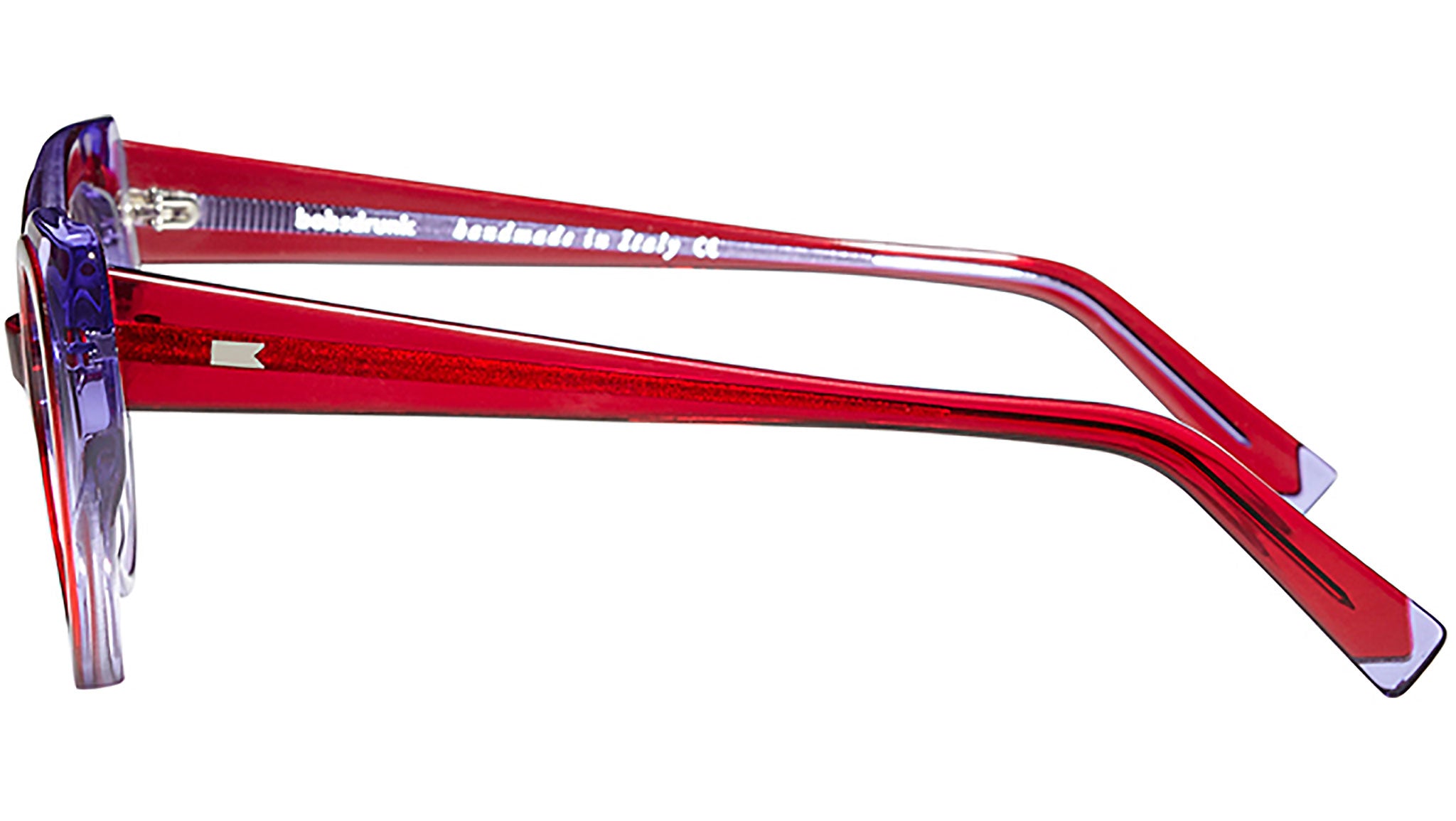 Montatura da vista Bobsdrunk Angie codice colore 251 in tonalità rosso trasparente / viola. Prodotti senza tempo e forme audaci convivono in questa nuova collezione Eyewear 2023. Le linee sono disegnate con maestria, per creare un effetto di audace leggerezza. Ogni paio di occhiali Bobsdrunk è caratterizzato da un dettaglio emblematico, mostrato sulla parte anteriore e sulla punta delle aste, che evidenzia il valore del marchio. Rappresenta in un iconico simbolo l'unione della lettera iniziale e finale di Bobsdrunk. La scelta accurata dei materiali, la selezione dell'artigianalità e una costante ricerca cromatica sono le prerogative di ogni creazione di Bobsdrunk.