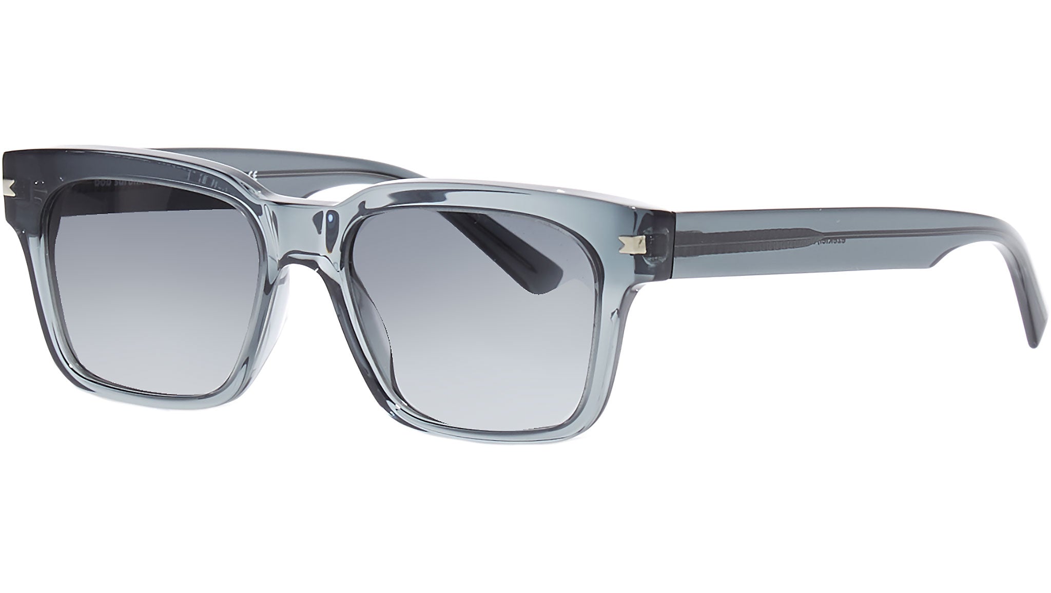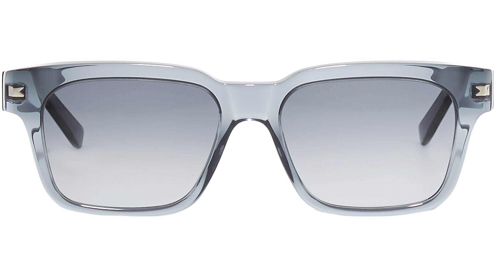 Acetate frame in grey crystal with silver details. grey gradient lenses.