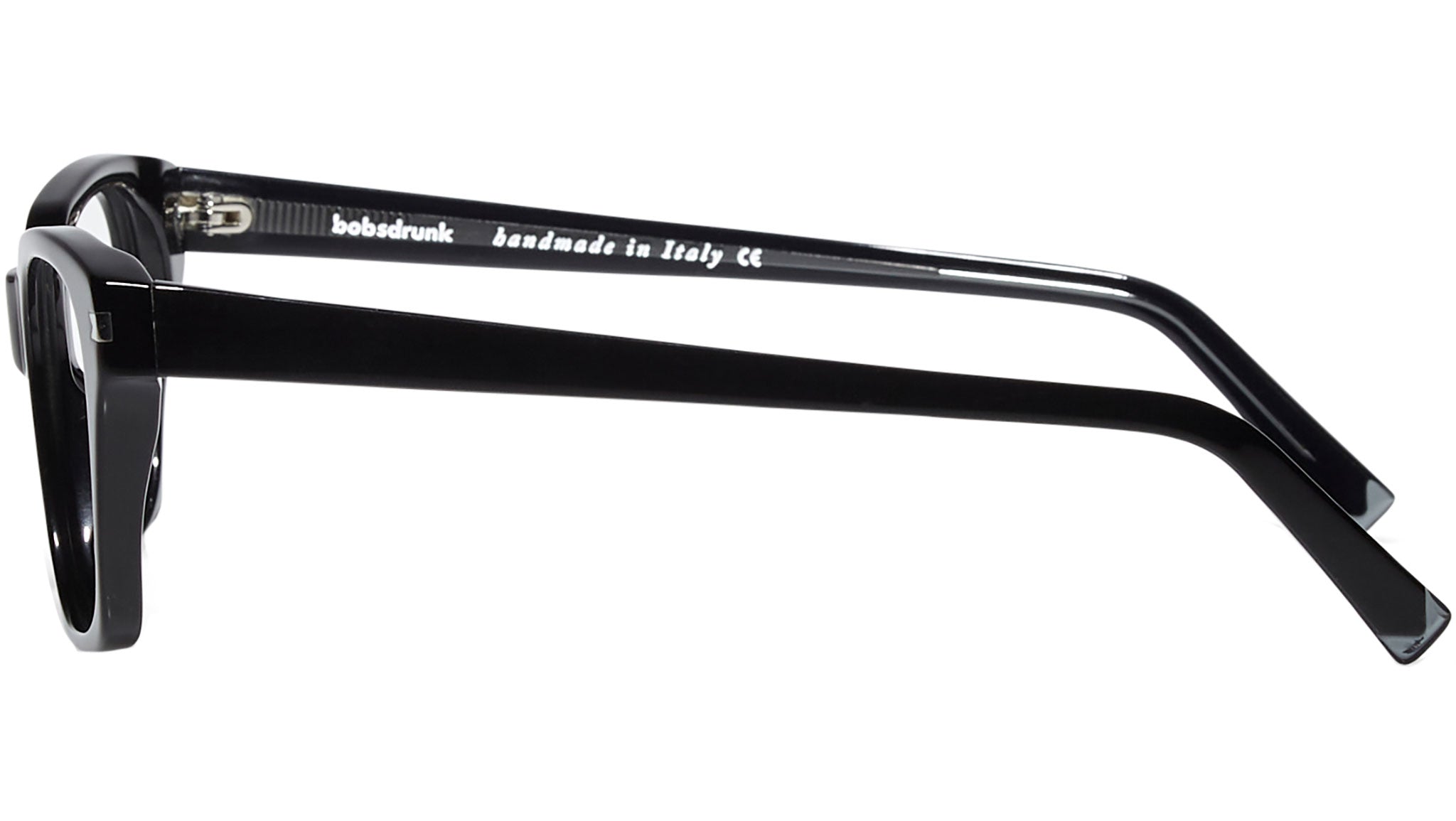 Montatura da vista Bobsdrunk Herbie codice colore 01 in tonalità nero. Prodotti senza tempo e forme audaci convivono in questa originale collezione Eyewear. Le linee sono disegnate con maestria, per creare un effetto di audace leggerezza. Ogni paio di occhiali Bobsdrunk è caratterizzato da un dettaglio emblematico, mostrato sulla parte anteriore e sulla punta delle aste, che evidenzia il valore del marchio. Rappresenta in un iconico simbolo l'unione della lettera iniziale e finale di Bobsdrunk. La scelta accurata dei materiali, la selezione dell'artigianalità e una costante ricerca cromatica sono le prerogative di ogni creazione di Bobsdrunk.