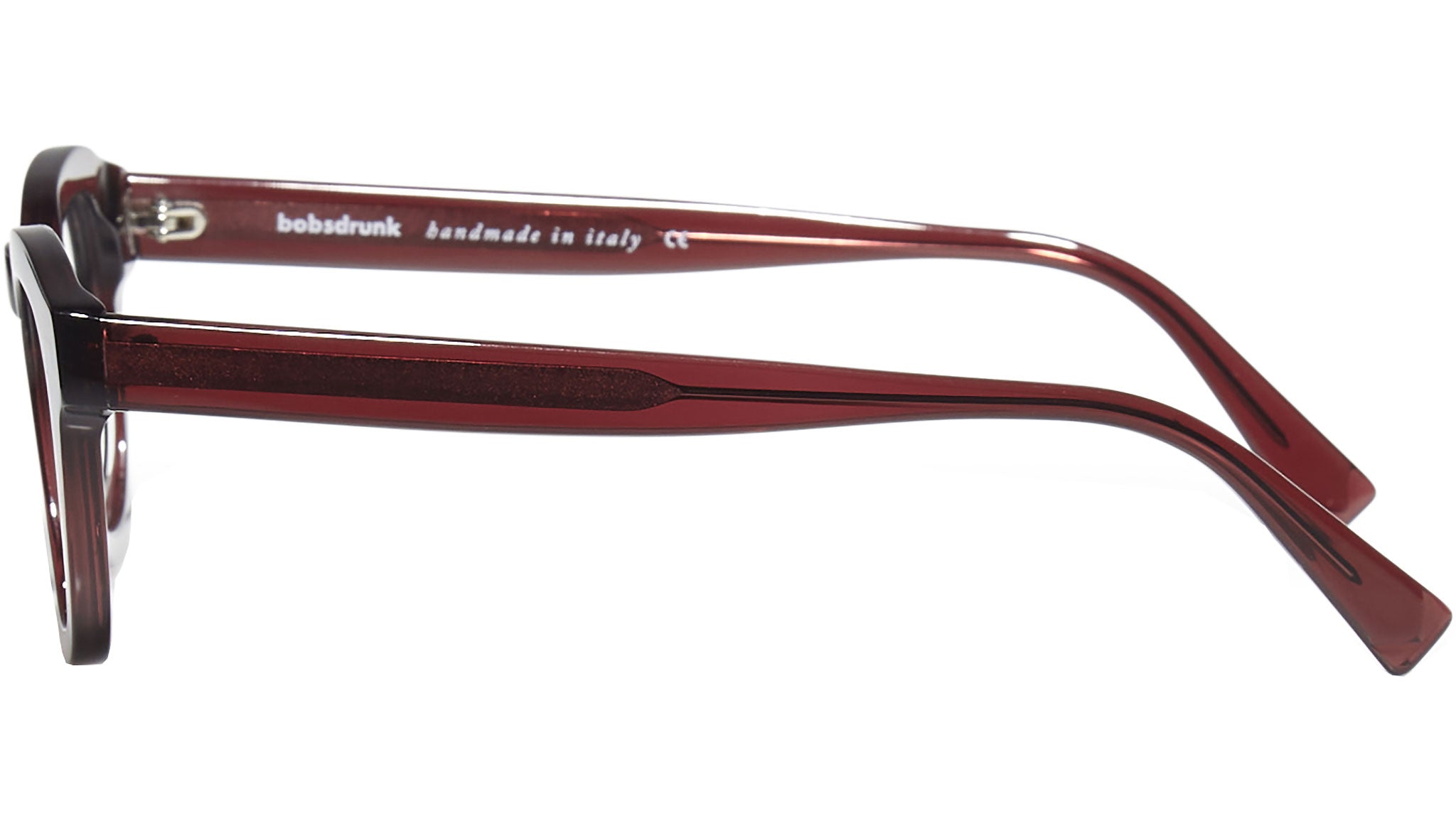 Montatura da vista Bobsdrunk Matt (46) codice colore 140 in tonalità borgogna trasparente. Prodotti senza tempo e forme audaci convivono in questa originale collezione Eyewear. Le linee sono disegnate con maestria, per creare un effetto di audace leggerezza. Ogni paio di occhiali Bobsdrunk è caratterizzato da un dettaglio emblematico, mostrato sulla parte anteriore e sulla punta delle aste, che evidenzia il valore del marchio. Rappresenta in un iconico simbolo l'unione della lettera iniziale e finale di Bobsdrunk. La scelta accurata dei materiali, la selezione dell'artigianalità e una costante ricerca cromatica sono le prerogative di ogni creazione di Bobsdrunk.