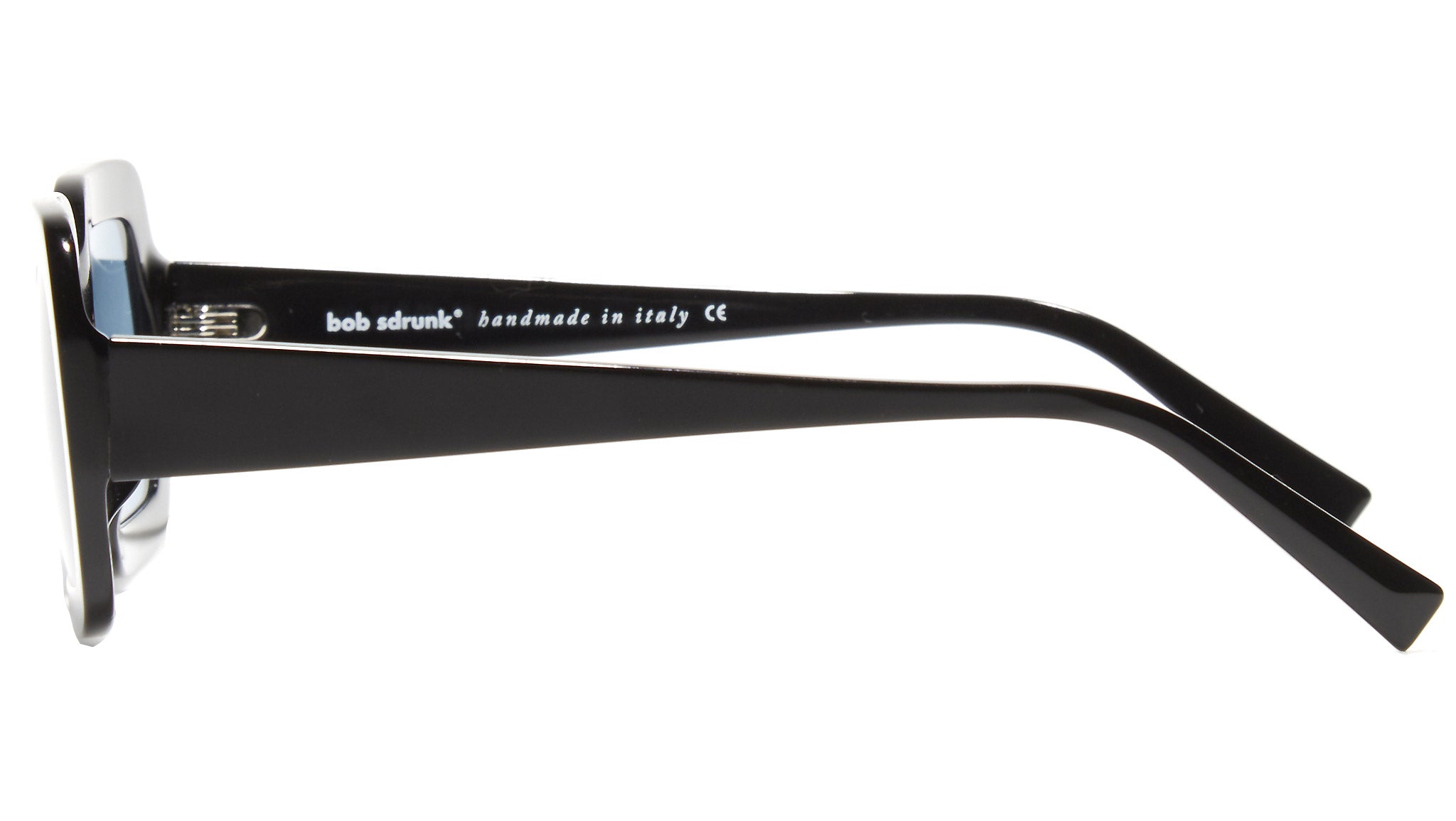 Il modello della collezione Bob Sdrunk da sole Romy 01 con montatura in nero e lenti blu. La meticolosa ricerca del design, delle forme, dei materiali e la cura di ogni singolo dettaglio, da vita a occhiali di alta qualità, originali e non convenzionali. Bob Sdrunk si propone di creare qualcosa che non è mai esistito; qualcosa che trova la sua vera sua identità nel futuro, ma trae origine da ispirazioni che provengono dal passato.