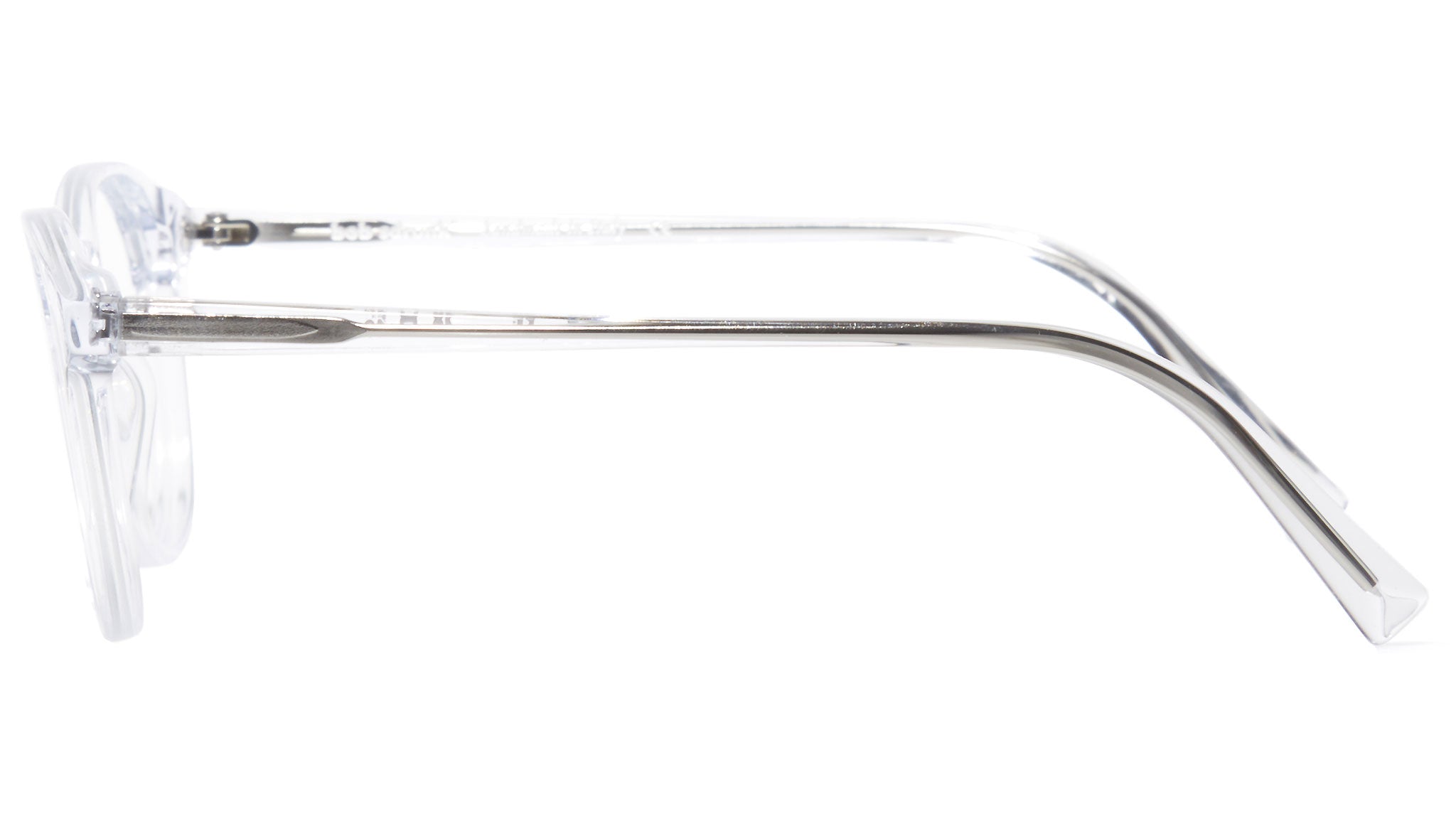 Il modello Bob Sdrunk da vista Theo 55 con montatura trasparente e lenti demo antiriflesso. La meticolosa ricerca del design, delle forme, dei materiali e la cura di ogni singolo dettaglio, da vita a occhiali di alta qualità, originali e non convenzionali. Bob Sdrunk si propone di creare qualcosa che non è mai esistito; qualcosa che trova la sua vera sua identità nel futuro, ma trae origine da ispirazioni che provengono dal passato.