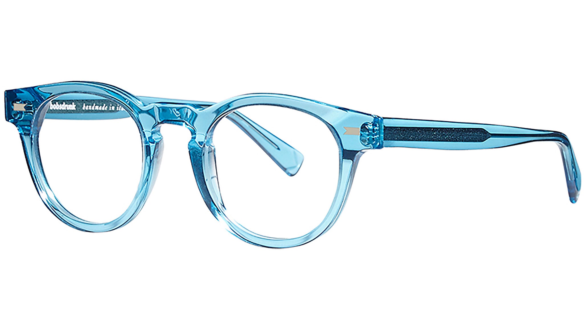 Montatura da vista Bobsdrunk Tony codice colore 137 in tonalità blu vivace trasparente. Prodotti senza tempo e forme audaci convivono in questa originale collezione Eyewear. Le linee sono disegnate con maestria, per creare un effetto di audace leggerezza. Ogni paio di occhiali Bobsdrunk è caratterizzato da un dettaglio emblematico, mostrato sulla parte anteriore e sulla punta delle aste, che evidenzia il valore del marchio. Rappresenta in un iconico simbolo l'unione della lettera iniziale e finale di Bobsdrunk. La scelta accurata dei materiali, la selezione dell'artigianalità e una costante ricerca cromatica sono le prerogative di ogni creazione di Bobsdrunk.