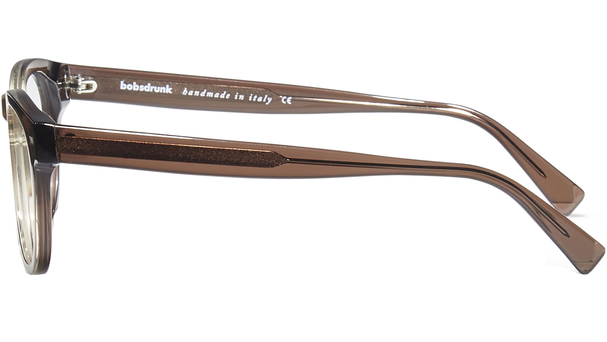Montatura da vista Bobsdrunk Tony codice colore 504 in tonalità marrone trasparente / giallo trasparente. Prodotti senza tempo e forme audaci convivono in questa originale collezione Eyewear. Le linee sono disegnate con maestria, per creare un effetto di audace leggerezza. Ogni paio di occhiali Bobsdrunk è caratterizzato da un dettaglio emblematico, mostrato sulla parte anteriore e sulla punta delle aste, che evidenzia il valore del marchio. Rappresenta in un iconico simbolo l'unione della lettera iniziale e finale di Bobsdrunk. La scelta accurata dei materiali, la selezione dell'artigianalità e una costante ricerca cromatica sono le prerogative di ogni creazione di Bobsdrunk.