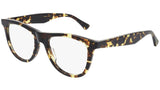 Occhiali da vista Bottega Veneta linea New classic variante colore 002 avana maculato lucido con astine color tartaruga.