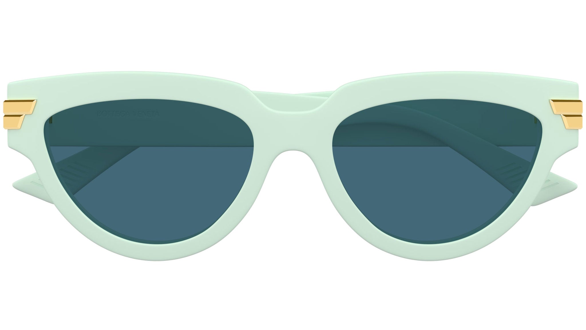Occhiali da sole Bottega Veneta modello BV1035S linea Unapologetic in acetato forma a gatto codice colore 009 ghiaccio menta solido lucido con lenti color blu verde tinta unita. Rivenditore autorizzato Bottega Veneta online. Gli occhiali vengono consegnati con custodia e accessori originali e sono coperti dalla garanzia ufficiale di 12 mesi del produttore.