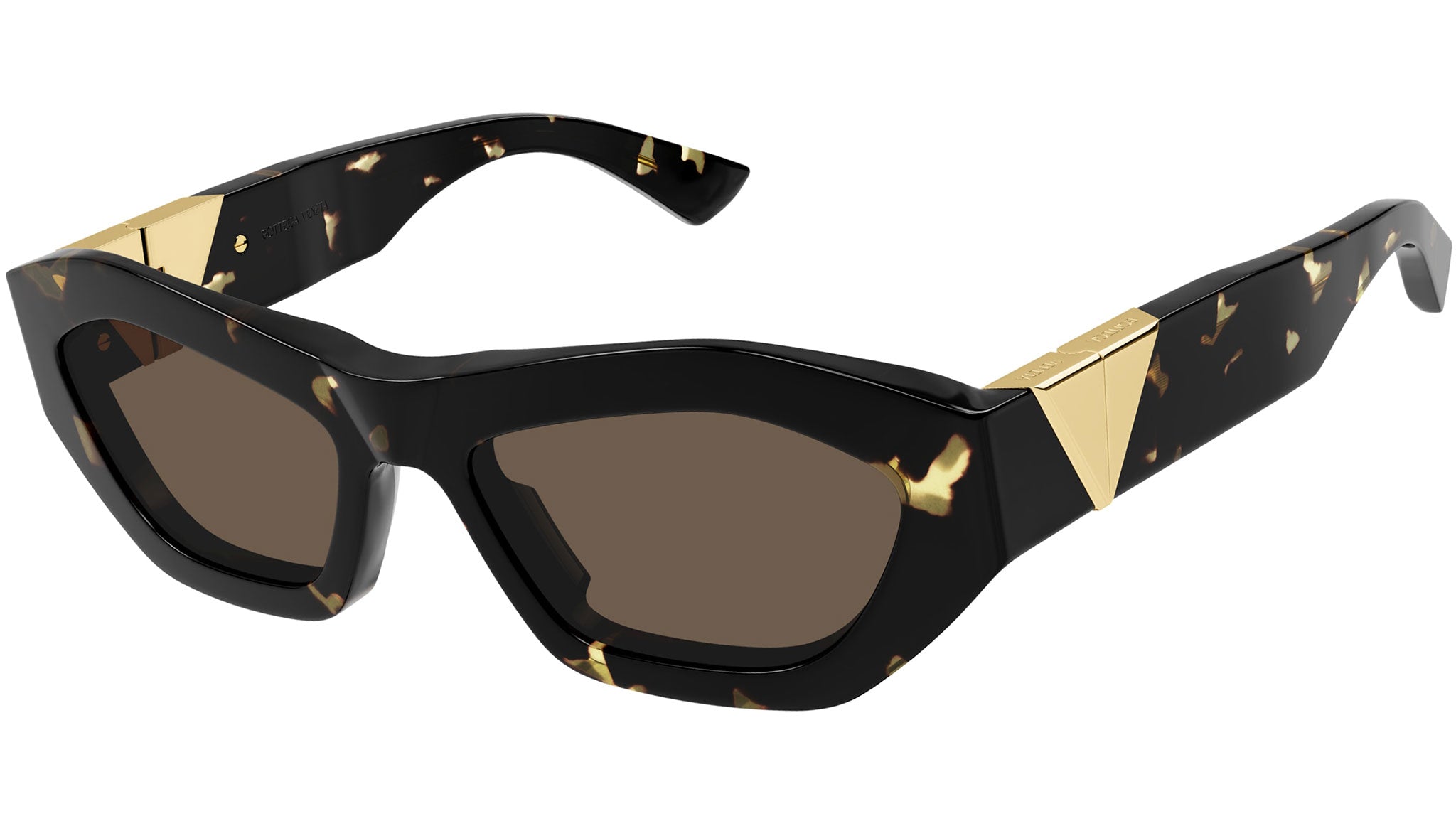 Occhiali da sole Bottega Veneta linea New Classic modello BV1221S variante colore 002 avana maculato lucido con lenti color marrone tinta unita.