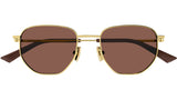 Occhiali da sole Bottega Veneta BV1301S 006 unisex con montatura pantos in metallo oro lucido e lenti marrone caldo tinta unita. Linea: Minimalist. Codice modello: BV1301S. Codice colore: 006. Made in Italy. Rivenditore autorizzato Bottega Veneta online. Gli occhiali vengono consegnati con custodia e accessori originali e sono coperti dalla garanzia ufficiale di 12 mesi del produttore.