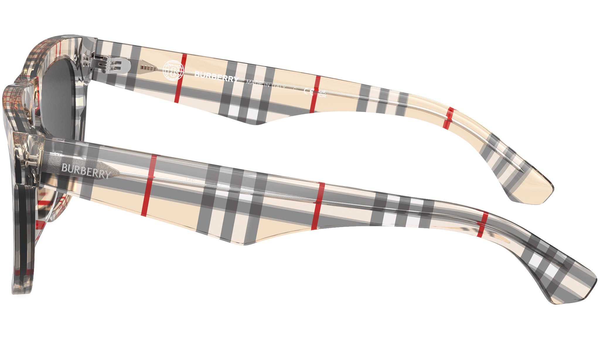 Occhiali da sole Burberry linea Icon Check modello BE4431U codice colore 412287 con montatura full rim in acetato vintage check e lenti in bio poliammide color grigio scuro. Scopri l'essenza del più tradizionale stile britannico con gli occhiali da sole firmati Burberry, un'accattivante collezione eyewear di montature originali, da uomo e da donna. Burberry offre una selezione accurata di silhouette classiche e montature contemporanee, adatte a soddisfare le più diverse preferenze. Dagli eleganti modelli full-rim a quelli semi-rimless, la varietà di montature in acetato o in metallo esprime tutta la raffinatezza del brand. Fin dalla sua fondazione nel 1856, Burberry è il simbolo globale del lusso britannico, rinomato per il suo ricco patrimonio e la passione per la vita all'aria aperta. Oggi, guidata dal direttore creativo Daniel Lee, Burberry continua a ridefinire il panorama della moda, interpretando lo stile britannico moderno, con i suoi codici distintivi e i suoi modelli iconici.