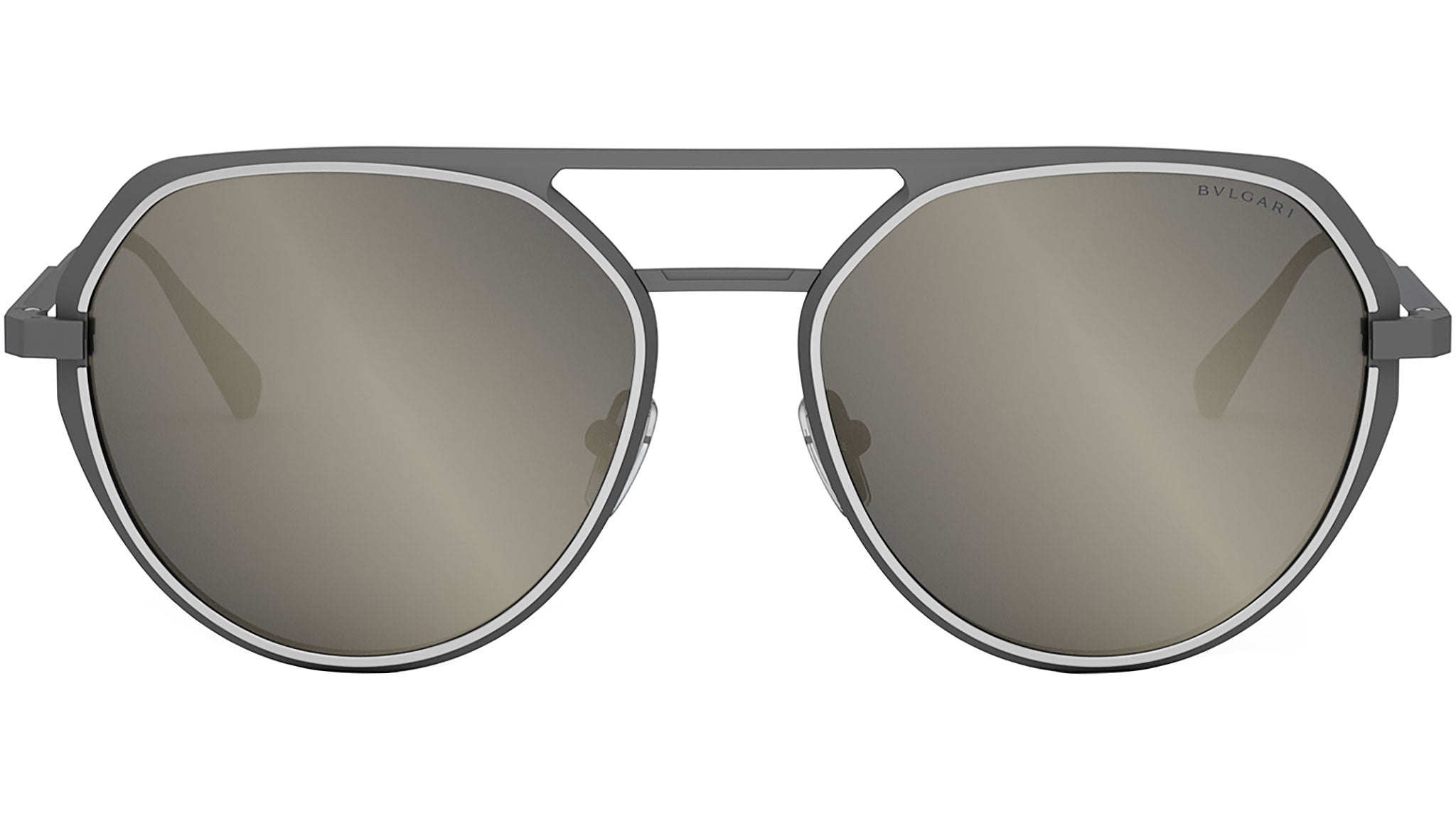 Occhiali da sole BVLGARI BV40019U linea Octo in titanio rutenio scuro con rims palladio colore 15C con lenti color grigio solido con avorio a specchio. Rivenditore autorizzato online BULGARI. Gli occhiali vengono consegnati con custodia e accessori originali.