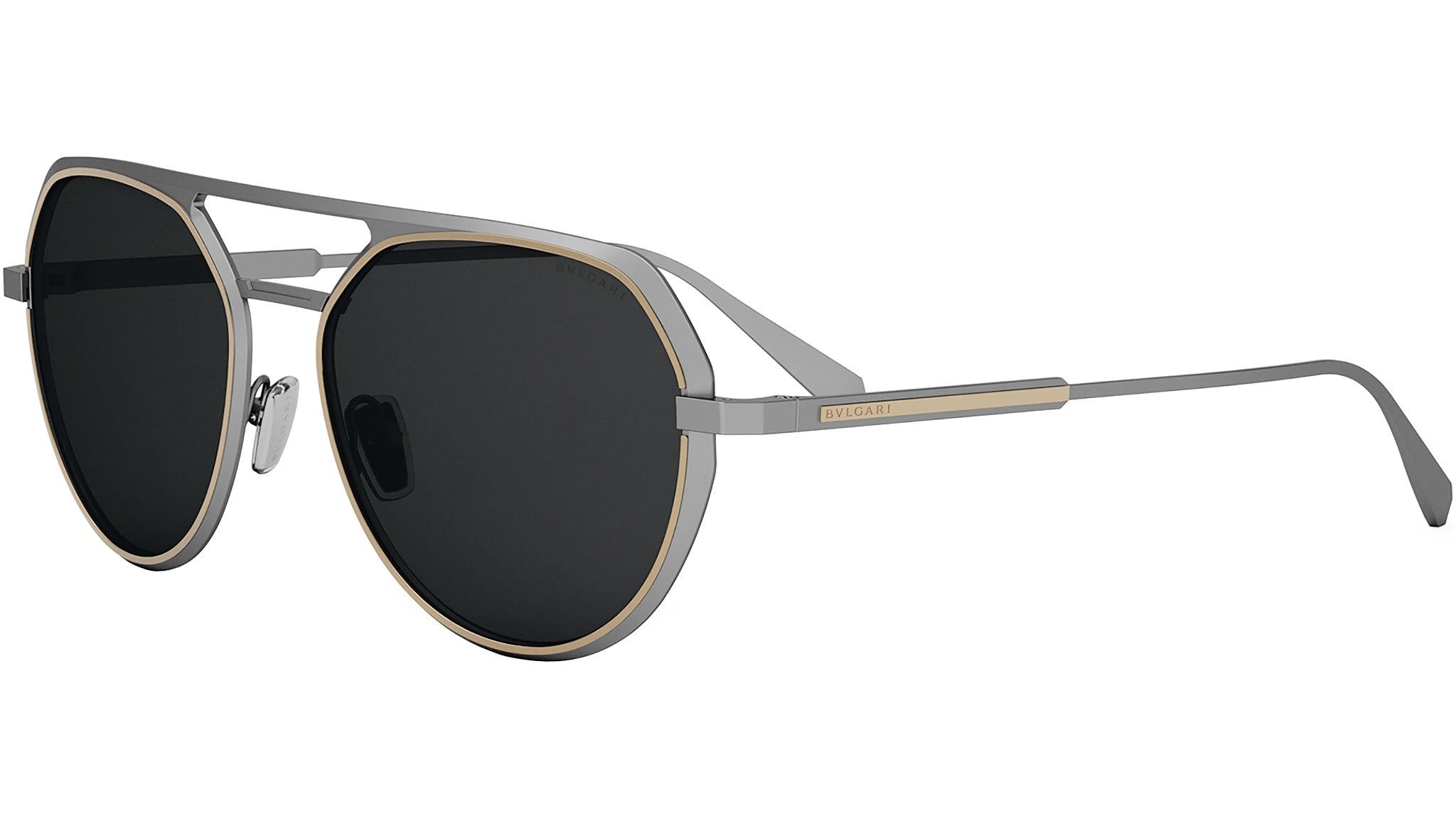 Occhiali da sole BVLGARI BV40019U linea Octo in titanio palladio con rims oro chiaro colore 17D con lenti color grigio fumo solido polarizzato. Rivenditore autorizzato online BULGARI. Gli occhiali vengono consegnati con custodia e accessori originali.