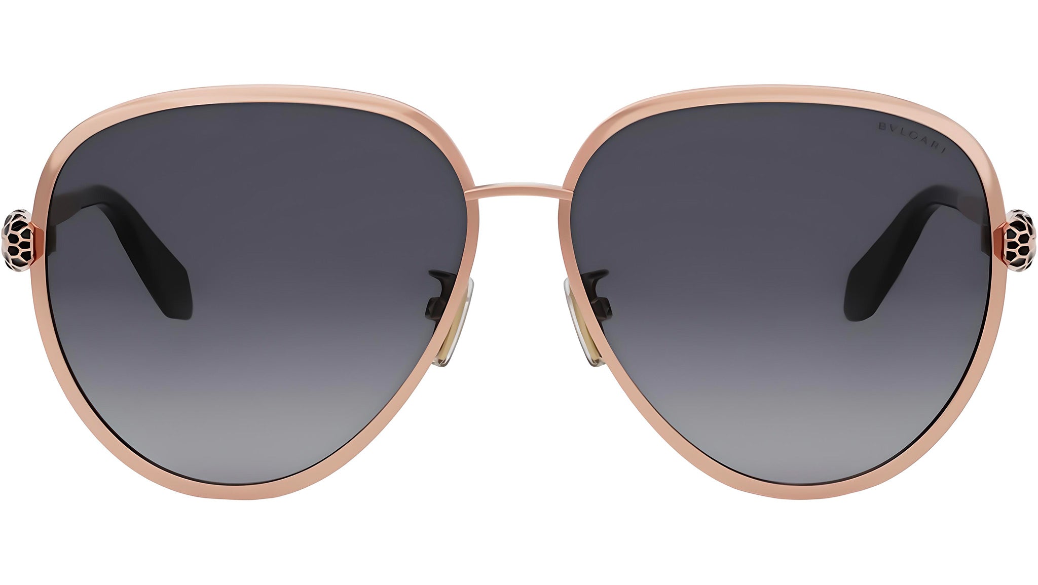 Occhiali da sole BVLGARI BV40043U linea Serpenti Forever in metallo oro rosa colore 28B con lenti color nero sfumato. Rivenditore autorizzato online BULGARI. Gli occhiali vengono consegnati con custodia e accessori originali.