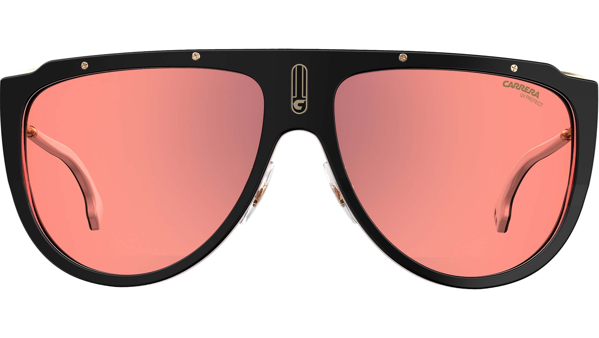 Dal design inedito e sempre un passo avanti, la collezione Carrera Flag soddisferà sicuramente i gusti più esigenti – come nel caso di questi occhiali da sole modello aviator, che reinterpretano una forma classica in termini di costruzione. Il frontale in acetato è punteggiato da piccoli rivetti in metallo e l’iconico logo-C, fieramente posizionato al centro del frontale, mentre la barra centrale e le aste nella stessa tonalità aggiungono un contrasto di texture alla silhouette pulita. Le lenti sfumate e il logo inciso sulle aste completano questo modello confortevole con la giusta dose di grinta.