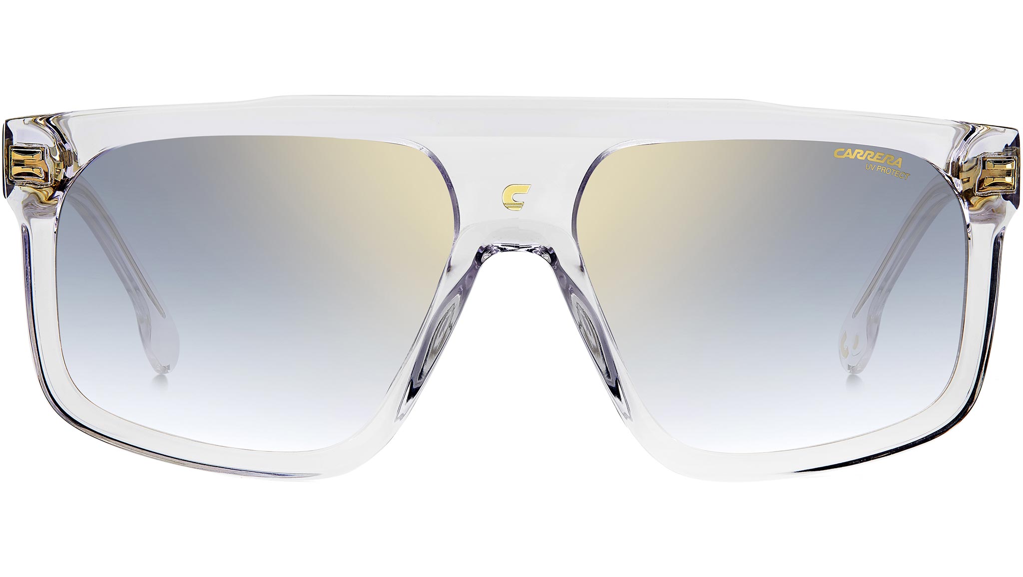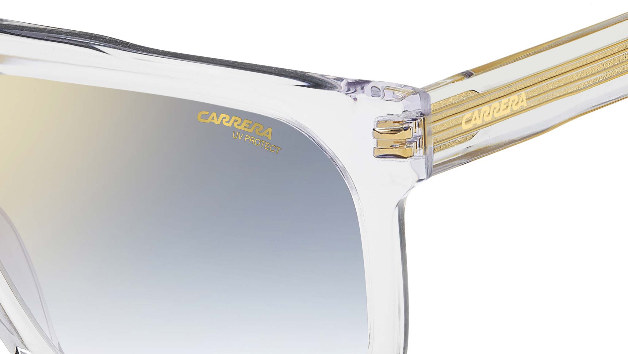 Occhiali da sole Carrera modello 1061/S colore 900 1V crystal. Carrera guarda alle sue più iconiche cifre stilistiche per occhiali da sole che aprono la strada alle nuove tendenze. I trend-setter ameranno questo modello in acetato con frontale flat-top e un gioco di trasparenze che esalta la “C” posta al centro. Carrera lo propone anche nella versione con l’anima lavorata ben visibile attraverso aste. Il modello può montare lenti graduate ed è disponibile con lenti specchiate o polarizzate.