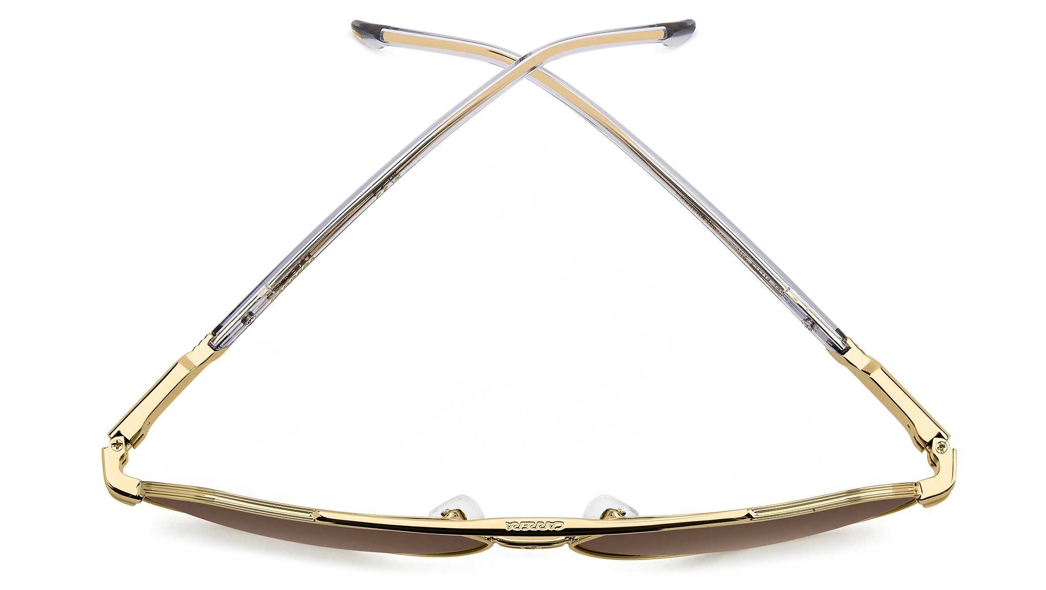 Occhiali da sole Carrera modello 1067/S colore 2F7 HA gold grey. Lenti a goccia, montatura in metallo, elementi identificativi Carrera: ecco la ricetta della potenza estetica di questi occhiali da sole unisex. Il modello sfoggia un doppio ponte incisivo in vero stile Carrera, rimarcato dal logo laserato sulla parte superiore. Tra le qualità tecniche rientrano le cerniere flessibili e la possibilità di montare lenti graduate. Disponibile in versione polar e ultrapolar con coating dorato.