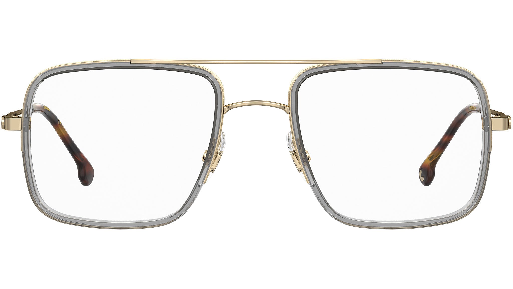 Tra i modelli più audaci della stagione – questi occhiali da vista da uomo non mancheranno di farsi notare. Realizzati in un mix di acciaio inossidabile e acetato, presentano il frontale spesso rettangolare dal look moderno e maschile, grazie al pronunciato doppio ponte centrale. Degno di nota il design particolare delle aste, accentuato dallo storico motivo a bandiera, che si fa portavoce dell’inconfondibile spirito e appeal contemporaneo Carrera.