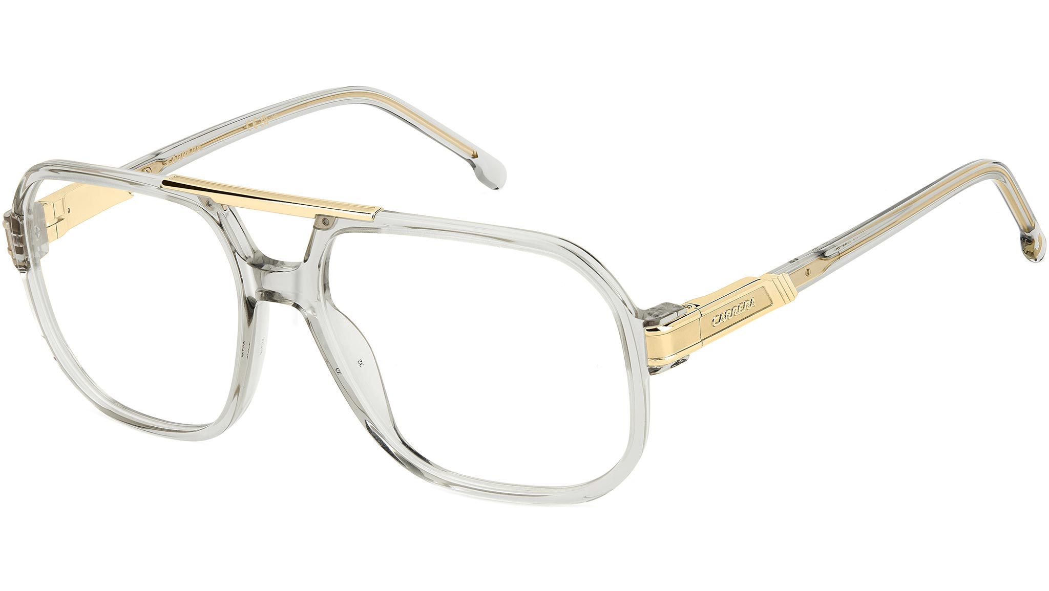 Occhiali da vista Carrera modello 1134 colore KB7 grey. Occhiali da vista dal design audace caratteristico della collezione Flag di Carrera. Indossarli significa rendere lo sguardo protagonista, grazie alle lenti oversize sottolineate dal flat-top in metallo. Anche le aste combinano acetato e metallo, con elementi scultorei firmati Carrera, dotate di cerniere flessibili e ancora più distintive in versione trasparente con anima a vista.