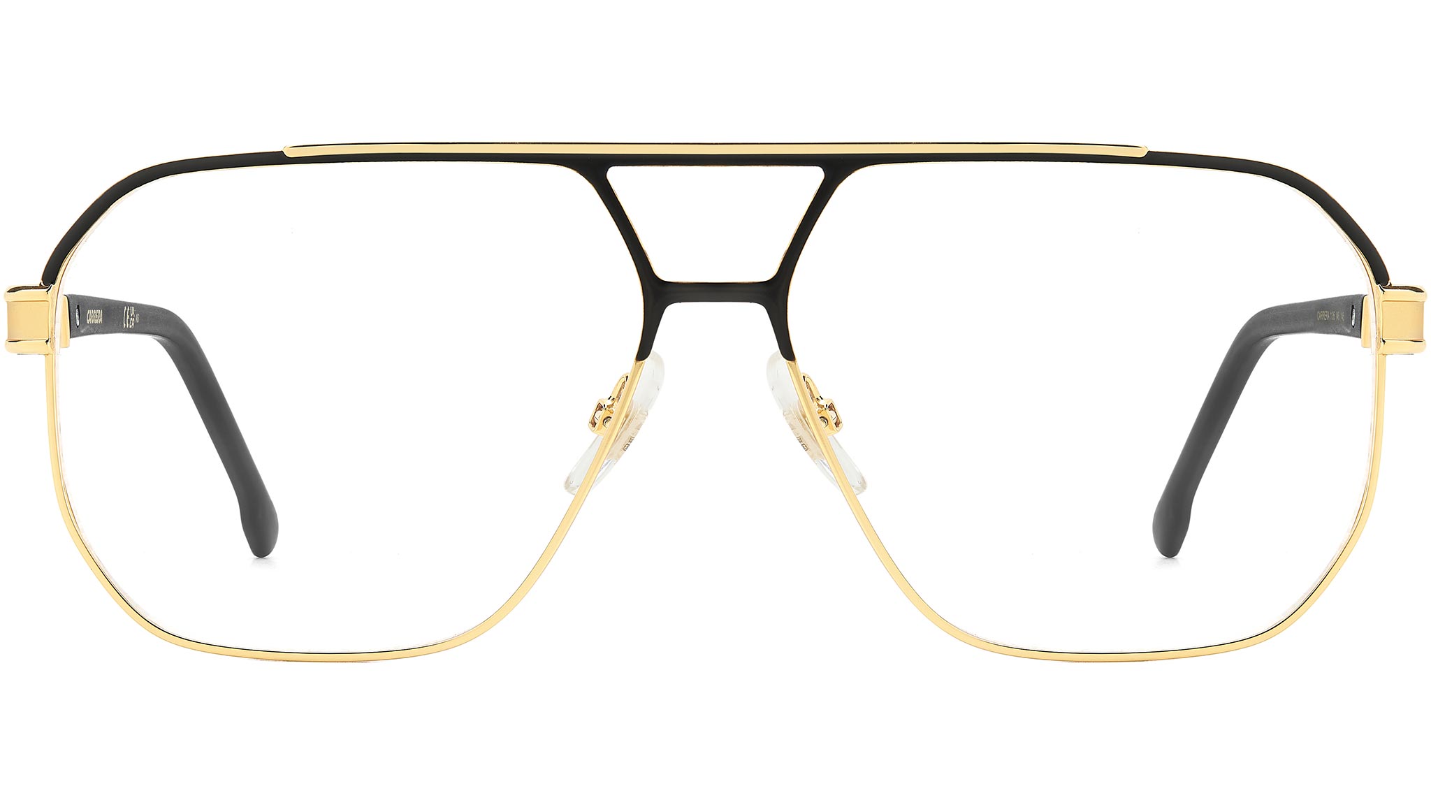 Occhiali da vista Carrera modello 1135 colore I46 matte black gold. Tutto il meglio della storia e della qualità Carrera in un occhiale da vista emblematico e riconoscibile. La leggendaria forma navigator con doppio ponte è l’elemento che rende questo modello un’icona. Le aste presentano il logo Carrera in rilievo e terminali lunghi in acetato, anche in versione trasparente con anima a vista. La calzata è piacevole grazie alla struttura leggera in metallo, alle cerniere flessibili e ai naselli regolabili.