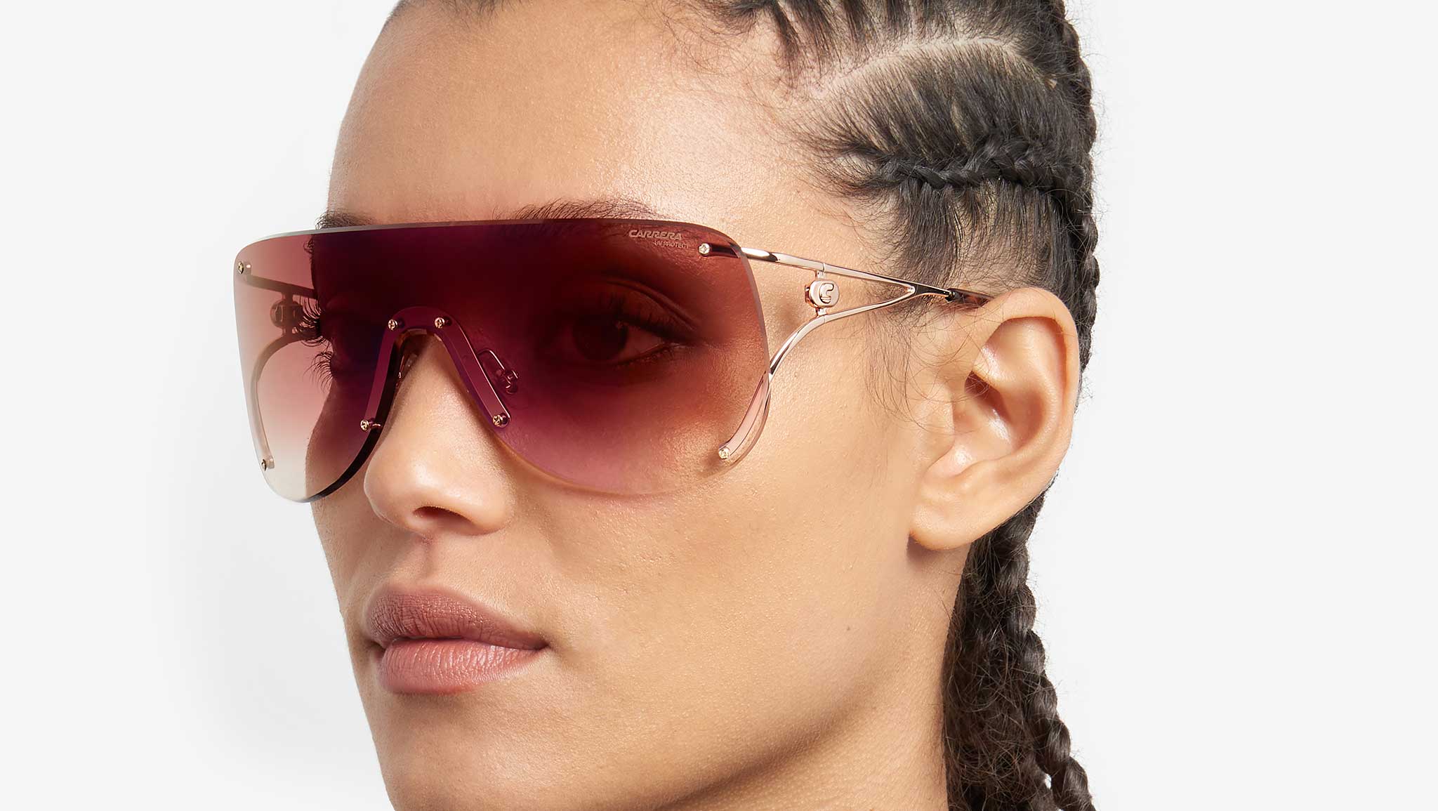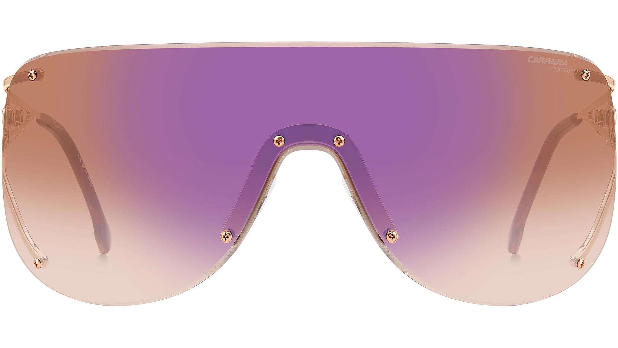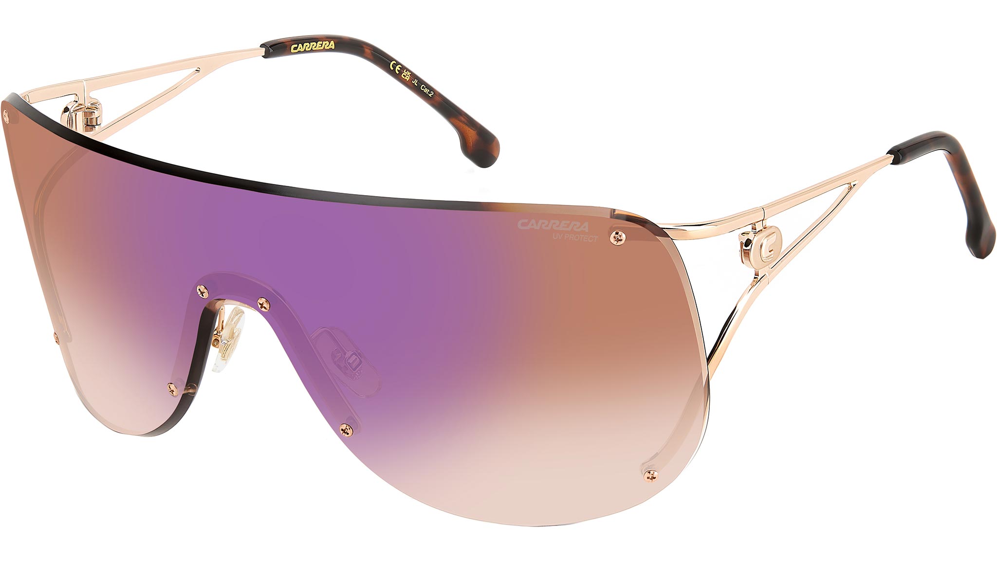 Occhiali da sole Carrera modello 3006/S colore DDB A8 gold copper. Fanno breccia nel cuore delle vere fan Carrera questi occhiali da sole per donna in edizione speciale, dedicati ai festival musicali. L’effetto wow è dato dalla maschera rimless: un’unica lente dalla forma avvolgente impreziosita dalle viti a vista e dal trattamento iridescente. Le aste sono un gioiello di design, con il loro profilo a forchetta, il logo sospeso e la dicitura “Festival Edition” sul lato interno dei terminali.