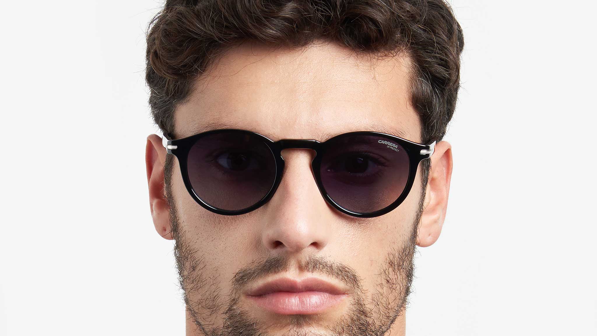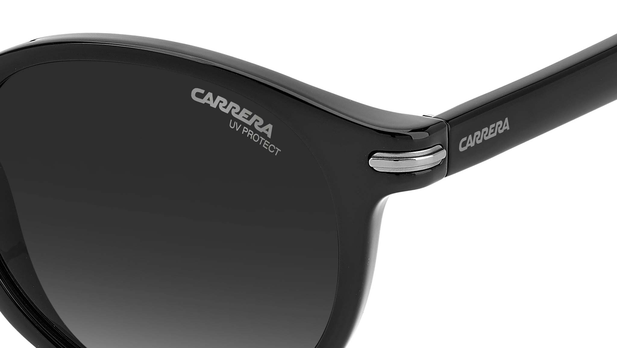 Occhiali da sole Carrera modello 301/S colore 807 9O black. Carrera sceglie una forma pantos con naso a chiave per questi occhiali da sole carichi di dettagli iconici. Spicca infatti sul frontale l’inserto metallico con forma a C, che aggancia le aste in acetato sagomate a pinna: elementi rappresentativi del mondo Carrera. Il modello è disponibile con aste multistrato, lenti tinta unita, sfumate e a specchio, oltre che con nuova tecnologia Ultrapolar, per una visibilità priva di ogni riflesso e davvero protettiva.