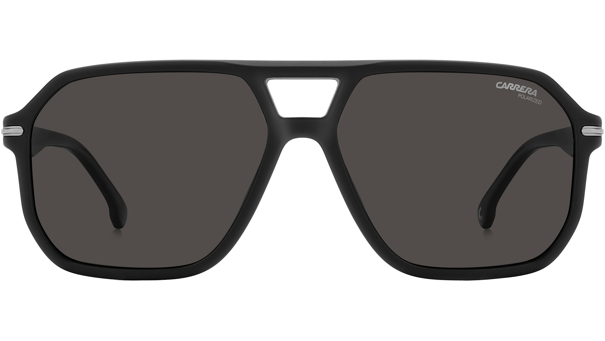 Occhiali da sole Carrera modello 302/S colore 003 M9 matte black. Un design dal carattere deciso per questi occhiali da sole da uomo. Sono nati per distinguersi, grazie alla forma rettangolare con doppio ponte - tipica Carrera - le aste a pinna e l’inserto metallico che aggiunge carattere al frontale. C’è solo da scegliere tra le diverse combinazioni colore, anche con aste multistrato, e lenti sfumate, a specchio, polarizzate o con tecnologia Ultrapolar, per una qualità visiva eccellente.